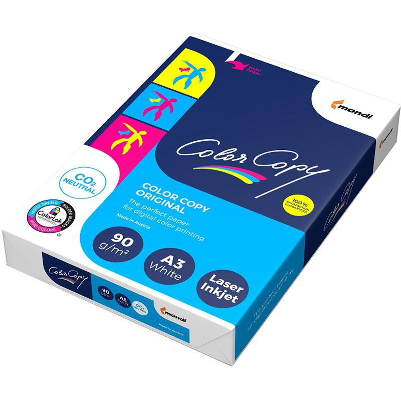 Бумага Color Copy формата А3 предназначена для печати на монохромных и цветных лазерных принтерах, на цветных копировальных аппаратах и на цифровых печатных устройствах. Плотность бумаги составляет 90 г/кв.м, толщина - 98 мкм, высокая степень белизны - 161%. Поверхность гладкая, с однородной структурой. Пачка содержит 500 листов. Превосходный визуальный эффект с яркими и точными цветами обязательно привлечет внимание к Вашим материалам. Вы можете достичь всего этого с Color Copy благодаря широчайшей цветовой гамме на цветной лазерной печати. С Color Copy можно добиться передачи натуральных оттенков кожи и воспроизведения всей палитры цветов, даже таких сложных как желтый/зеленый. Высочайший цветовой охват достигается сбалансированными и оптимизированными свойствами бумаги. Специальная обработка поверхности Color Copy в сочетании с ее гладкостью гарантирует четкость цветовоспроизведения в самом широком спектре. Предназначена для односторонней и двусторонней печати. Дополнительные преимущества: - обработанная особым способом поверхность позволяет отлично закрепляться тонеру; - беспроблемная обработка бумаги в печатной машине; - исключительные экологические свойства с сертификатами FSC, EU Ecolabel, CO2 neutral; - не токсична, стойкость к нагреву до 200 градусов; - стойкость к старению, сертифицирована ISO 9706; - одобрена ведущими производителями печатной техники. Страна производитель: Австрия.