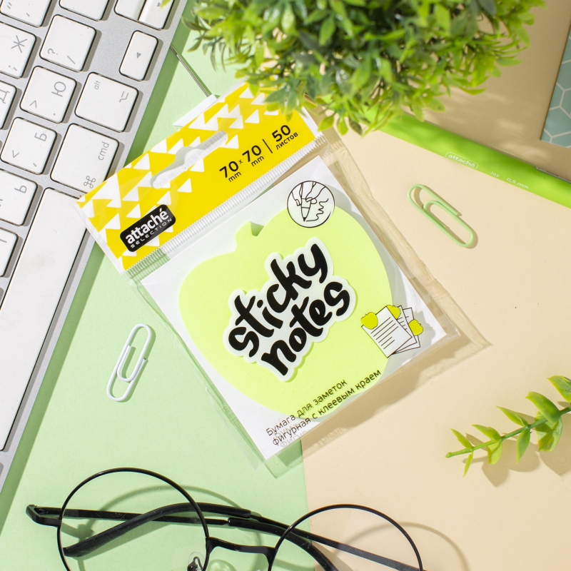 Фигурные стикеры Attache Selection в форме яблока, размером 70x70, имеют 50 листов упакованных в пленку. Стикеры изготовлены из офсетной пастельной бумаги. Плотность бумаги: 75 г/кв.м. Клейкий слой - 21+2 Н/м. Идеально подойдут для сотрудников творческих профессий и руководителей: рекомендуются для использования в процессе совещаний, обучения, мозговых штурмов. Длина клейкой стороны 70 мм. После удаления бумаги на поверхности не остается следов клеевого состава, лист можно крепить повторно. Чтобы увеличить срок службы стикеров, пожалуйста, следуйте рекомендациям: 1) Отделять стикер от блока следует вдоль клеевой полосы. Так можно избежать скручивания и последующего отклеивания стикера. 2) Прежде чем наклеивать стикер, убедитесь в отсутствии грязи и пыли на поверхности. На чистой поверхности срок службы клеевого слоя более продолжителен.