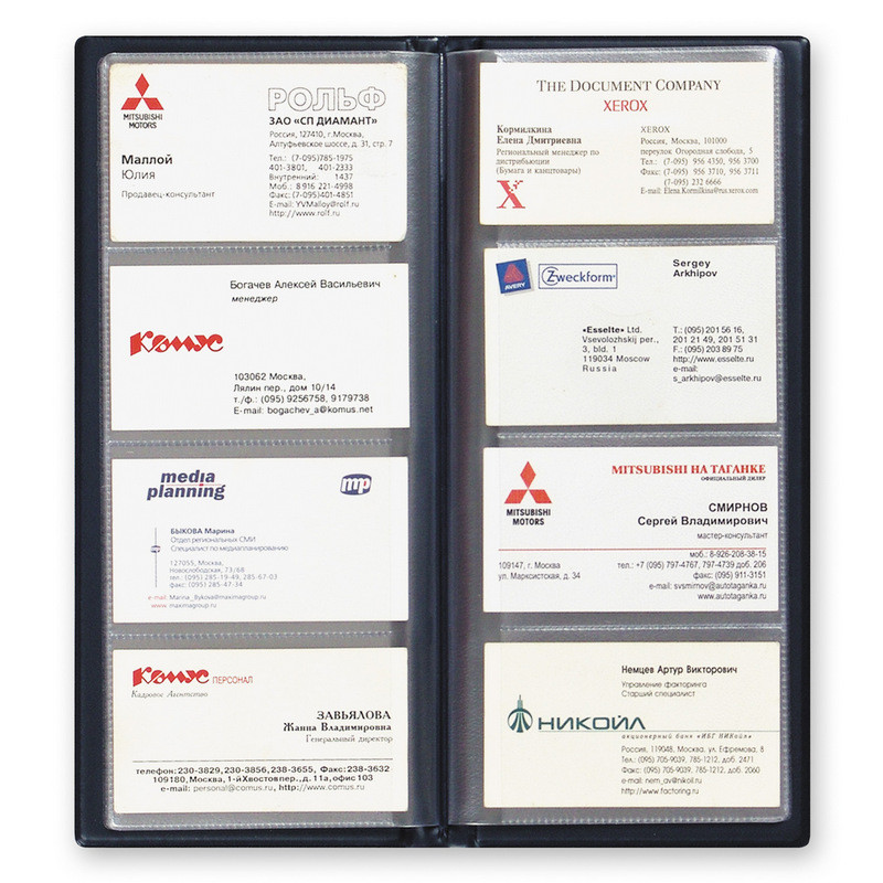 Вертикальная настольная визитница Attache изготовлена из ПВХ высокого качества синего цвета, размер - 110x250 мм. Имеет внутренний блок на 96 визиток. Карманы для визиток изготовлены из прозрачного полипропилена. На обложку визитницы можно нанести логотип любым способом тиснения. Каждое отделение предполагает возможность хранения 2-х визиток.