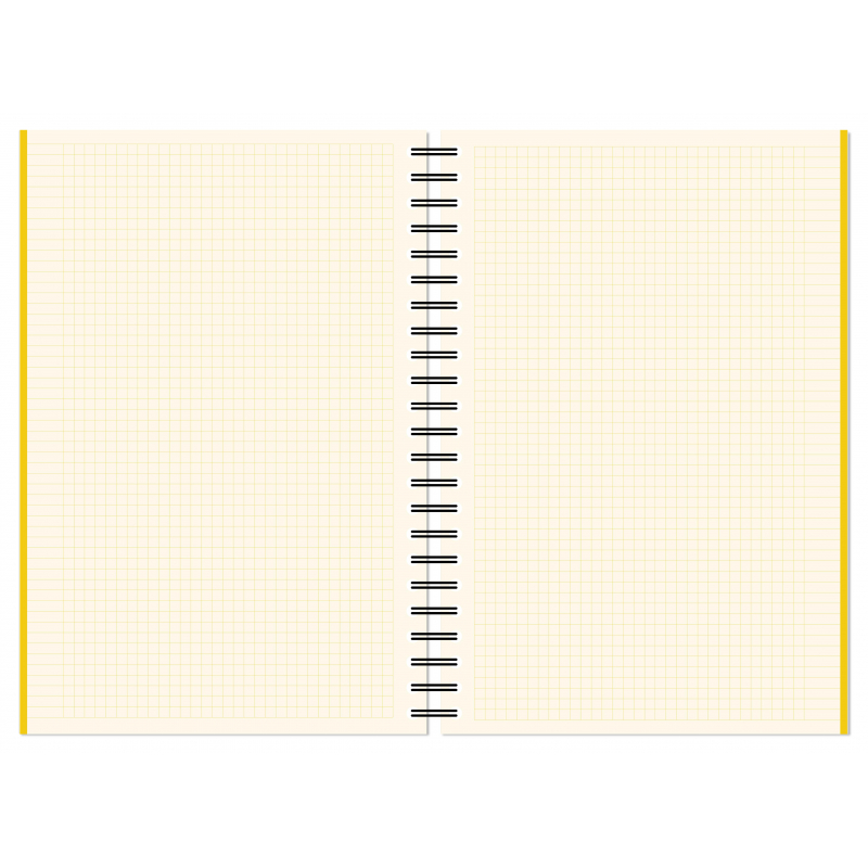 Бизнес-тетрадь "Spring Book" формата А4. Цвет обложки: желтый. Блок плотностью 65 г/кв.м состоит из тонированной, светло-желтой бумаги. Содержит в себе 150 листов (300 страниц). Обложка из жесткого полупрозрачного пластика с волнистым рельефом. Обложка с вырубной формой для удобства перелистывания блока. Данная тетрадь имеет окрашенный торец блока. Наличие двойной толстой спирали увеличенного диаметра. Первый лист из плотного картона с запечаткой, разлиновка блока в клетку с полями.