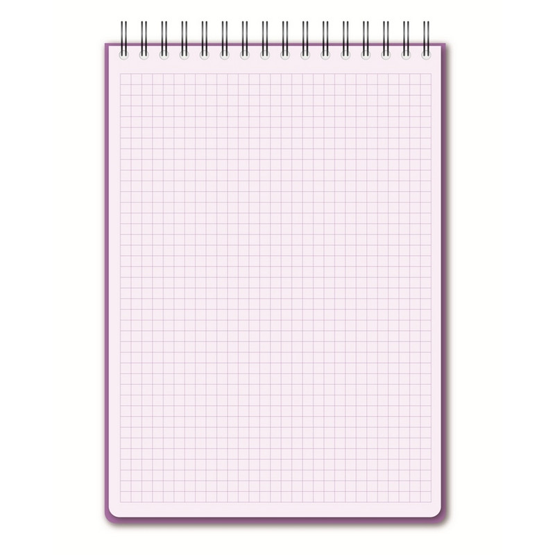 Блокнот Bright colours строгого офисного дизайна, формата A5. Пластиковая обложка защищает бумагу от деформации и загрязнения. Внутренний блок скреплен по верхнему краю металлической спиралью, содержит 60 тонированных листов в клетку.
