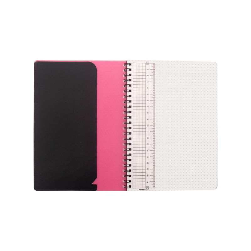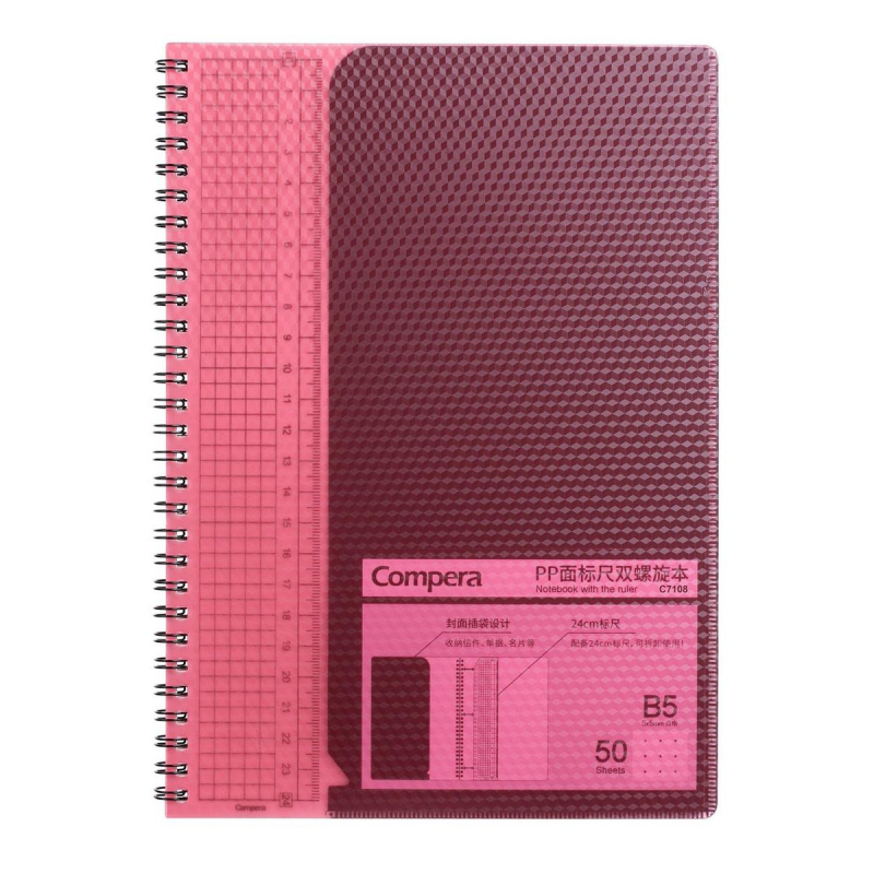 Блокнот на пружине Comix Diamond школьный, офисный дизайн, формат B5. Обложка из твердого, полупрозрачного пластика толщиной 0,7 мм, защищает блок от влаги и загрязнений. Обложка имеет внутренний карман, в котором удобно хранить визитки, карты, документы и т.п. Внутренний блок скреплен по левому краю металлической спиралью/пружиной, содержит 50 бежевых листов. Блокнот имеет съемную линейку из прозрачного пластика со шкалой 20 см, которая крепится к пружине. Линейку удобно отсоединить и использовать отдельно. Листы блока плотностью 80 г/кв.м, линовка в точку. Пластиковая обложка выполнена в розовом цвете.