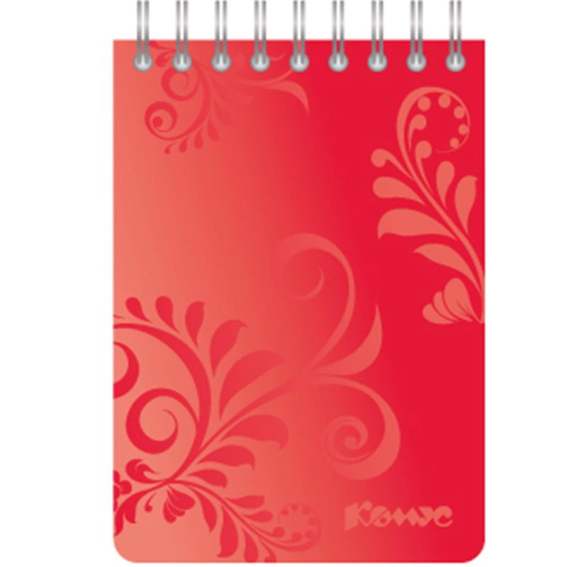Блокнот Комус Русская серия с пластиковой обложкой. Формат А7, красный цвет. Обложка изготовлена из высококачественного плотного матового пластика с нанесением глянцевого контрастного узора. Благодаря такой обложке, блокнот крайне износостоек при этом достаточно гибок. В блокноте 50 листов в клетку. Блок изготавливается из эстрабелой плотной бумаги. Размер блока - 76x105 мм. Для более эргономичного использования, разлиновка четко запечатана с идеальным совмещениеем и полями. Крепление на евроспираль, исключающую самопроизвольное выпадение листов.