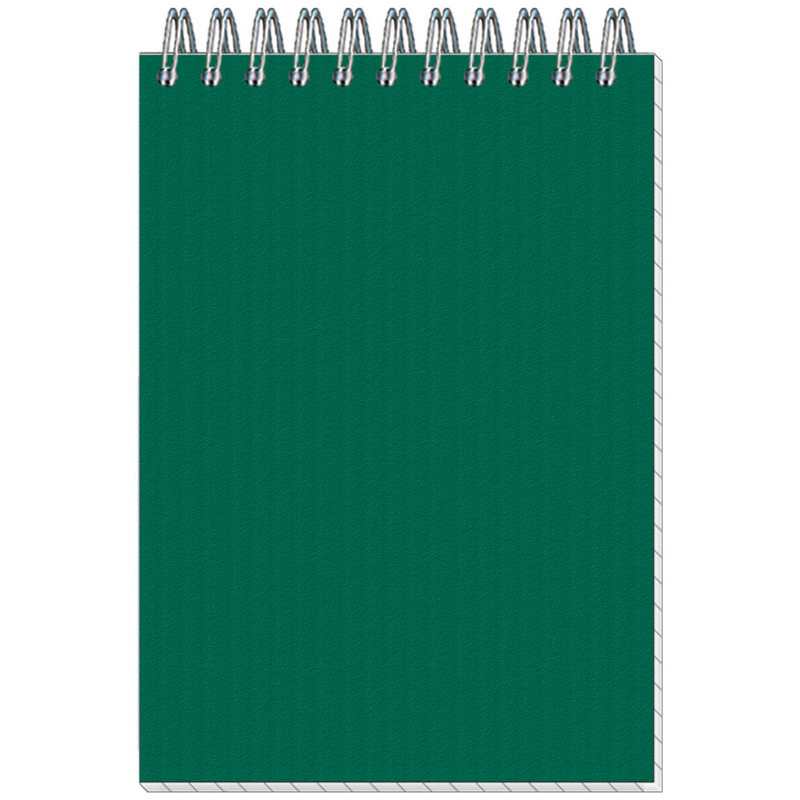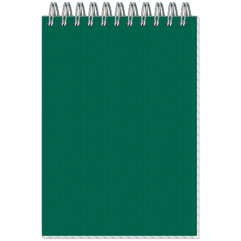 Блокнот Микровельвет офисного дизайна. Однотонная обложка зеленого цвета, изготовленная из дизайнерского картона с тиснением. Плотность обложки - 280 г/кв.м. Внутренний блок, скрепленный по верхнему краю металлической спиралью, содержит 50 листов (100 страниц) белой, офсетной бумаги с разлиновкой в клетку. Размер изделия: 101х145 мм. Плотность блока - 60 г/кв.м. Бумага высокой степени белизны по плотности соответствует качественной офисной бумаге. Блокнот имеет формат А6. Минимальный тираж под нанесение логотипа от 30 штук.
