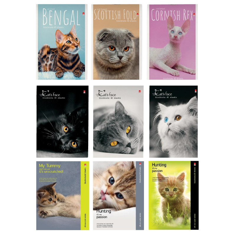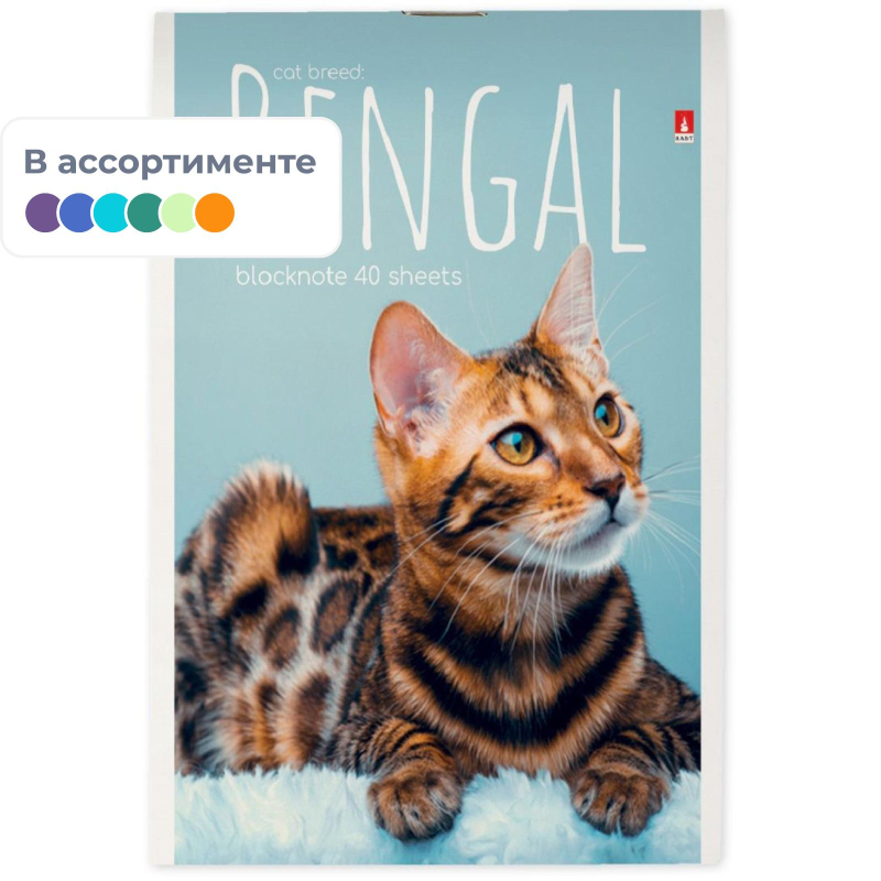 Блокнот Альт Котята А6 40 листов в ассортименте в клетку на скрепке (94х130 мм). Материал обложки картон (плотностью 235 гр/м2). В блоке 40 листов в клетку из белой бумаги плотностью 55 г/кв.м. Размер - 94x130 мм. Внимание! Товар поставляется в нескольких вариантах цвета/дизайна (без возможности выбора).
