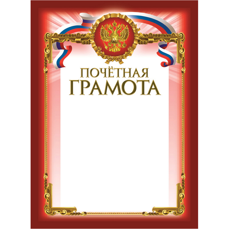Импортный мелованный полиграфический картон 230 г/кв.м. Герб и слова ?Почетная грамота? - тиснение золотой фольгой с конгревом. Формат: 210х290 мм. Упаковка: по 10 штук в термоусадочной плёнке так, что с обеих сторон упаковки видна лицевая сторона бланка. На каждой упаковке находится товарный ярлык со штрих-кодом на 10 бланков.