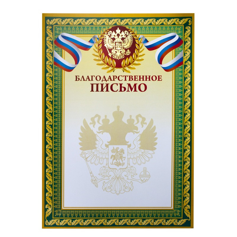 Благодарственное письмо (формат А4) отпечатано на мелованном картоне плотностью 230 г/кв.м. Бланк подойдет для печати текста на стандартном принтере. В упаковке 10 штук. Страна происхождения: Россия.