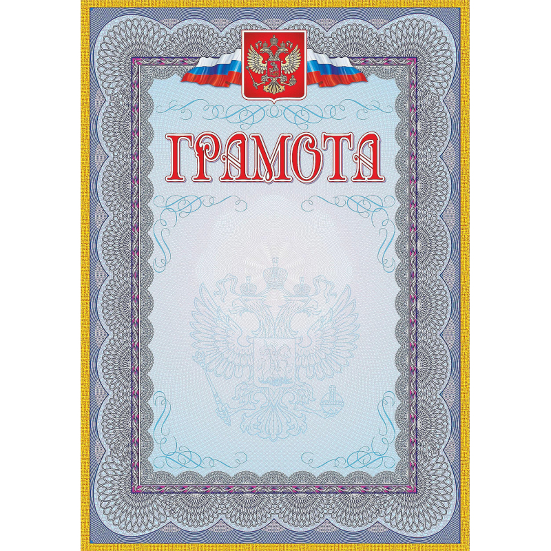 Грамота с гербом - наградная продукция за особые достижения. Грамота отпечатана на мелованной бумаге. Подходит для печати текста на принтере. В одной упаковке 40 листов. Плотность - 140 г/кв. м. Формат А4.
