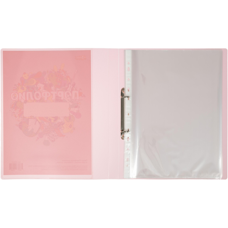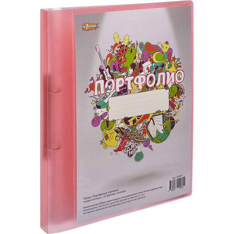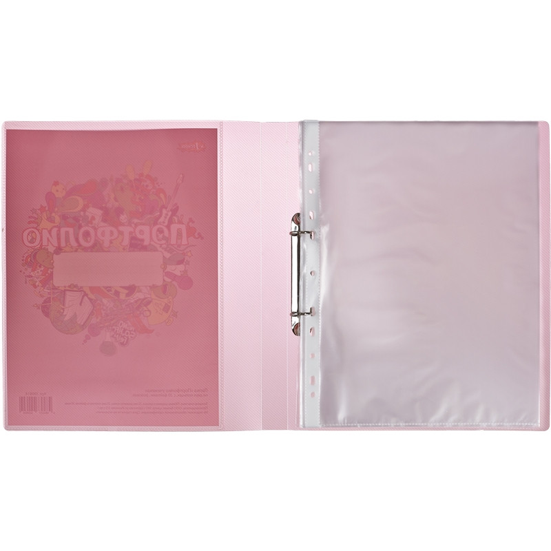 Папка-портфолио ученика с карманом. Материал - высококачественный полипропилен, цвет розовый, формат А4. Снабжена механизмом на двух кольцах, благодаря которому ребенок легко сможет пополнять свой портфель достижений по мере необходимости. В папке имеются 20 файлов. Фактура пластика: диагональ. Фурнитура - 2 кольца. Диаметр - 20 мм. Верхняя обложка с карманом. Есть возможность заменить картинку на обложке.