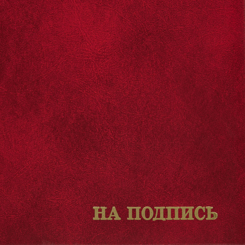 Адресная папка формата А4 изготовлена из бумвинила бордового цвета (слой ПВХ на бумажной основе). На обложку методом тиснения золотой фольгой нанесено изображение российского герба + 'На подпись'. Внутри есть фиксирующая ленточка для бумаг. Адресная папка подходит для подачи документов на подпись. Корешок папки составляет 18 мм. Один сантиметр корешка вмещает до 100 листов обычной 80-ти граммовой бумаги. Папка поставляется в пакете. Страна происхождения: Россия. Формат: 310x220 мм.