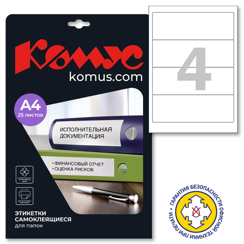 Такие этикетки для папок регистраторов имеют затемненную обратную сторону лицевого слоя. Это очень удобно для скрытия устаревшей информации на папке. Этикетки бумажные самоклеящиеся Promega label для маркировки папок-регистраторов подходят для печати на лазерных и струйных принтерах. При хранении листы с этикетками не слипаются между собой. Количество на листе - 4 этикетки размером 192x61 мм. В упаковке 25 листов формата А4.Для оформления и печати этикеток удобно использовать шаблон. Для того чтобы увидеть разлиновку шаблона, необходимо в ПО Word открыть вкладку "Макет" и щелкнуть "Отобразить сетку". Для удобства работы с рисунками: выделить вставленный в шаблон рисунок левой кнопкой мыши, открыть вкладку "Формат" и выбрать режим "Обтекание текстом - По контуру".Также можно самостоятельно сформировать шаблон в ПО Word.Пошаговая инструкция по созданию этикеток в ПО Word:1. Откройте текстовый редактор Word, в верхней горизонтальной строке рабочего окна щелкните стрелкой мыши "Сервис", в открывшемся перечне щелкните "Конверты и наклейки" (для Microsoft Word XP - "Письма и рассылки", а затем "Конверты и наклейки").2. В открывшемся окне "Конверты и наклейки" щелкните "Наклейки", затем в перечне справа щелкните "Параметры". Выберите тип принтера и вариант подачи бумаги.3. В окне "Параметры наклейки" щелкните "Создать". Появится окно, в нижней части которого - окошки для данных о выбранной вами этикетке.4. Введите данные об этикетках: величину верхнего поля, боковых полей и т. д. В окошке "Тип" введите размер этикетки или название, которое вы ей присвоите. (Указанные параметры можно узнать в инструкции, идущей в комплекте с этикетками.) Завершите настройку щелчком "ОК".Данные для печати этикеток в ПО Word: Размер этикетки, см: 19.2x6.1; Кол-во этикеток на листе: 4; Верхнее поле, см: 2.5; Боковые поля, см: 0.9; Шаг по вертикали, см: 6; Шаг по горизонтали, см: 19; Высота наклейки, см: 6; Ширина наклейки, см: 18.8; Число наклеек по горизонтали: 1; Число наклеек по вертикали: 4.5. Закройте окно "Параметры наклейки" (вкладка "Настройка"), нажав "ОК", после чего активизируется окно "Конверты и наклейки".6. В светлой прямоугольной ячейке окна "Конверты и наклейки" соразмерно формату этикетки один раз введите текст, который компьютер автоматически разместит на всех этикетках листа. Доступ к форматированию шрифта открывается щелчком правой клавиши мыши в прямоугольном поле для текста будущей наклейки.7. Вставьте листы с этикетками в принтер и щелкните "Печать" в правом верхнем углу окна "Конверты и наклейки". Для дальнейшей работы с этикетками щелкните "Создать" и сохраните файл как обычный документ редактора Microsoft Word. Сохраненный файл вы можете использовать в качестве шаблона для создания новых этикеток такого же формата.Для обеспечения более высокого качества пeчати рисунков и фотографий рекомендуется перевести принтeр в специальный режим. Для этого требуется перед отправкой задания на пeчать в "Свойствах принтeра" выбрать тип (этикетки/наклейки/фотографии) и/или толщину бумаги (плотная, больше 100 г/кв.м и т. п.) - в зависимости от драйвера принтeра настройки могут отличаться.В рамках ребрендинга производится перевод данного артикула с ТМ Promega на ТМ Комус с сохранением всех потребительских характеристик товара. На переходный период допускается поставка данной продукции в двух вариантах дизайна.