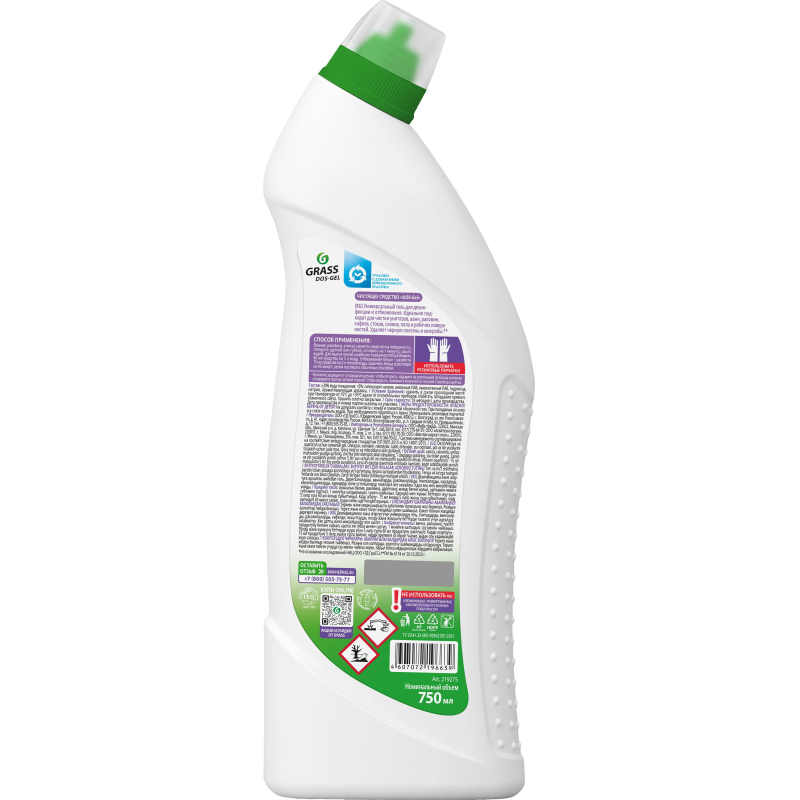 Средство для сантехники Grass Dos-Gel 750 мл. Назначение Чистка унитазов, ванн, раковин, кафеля, стоков, сливов, пола и рабочих поверхностей. Способ применения Нанести гель на поверхность или под ободок оставить на несколько минут, воспользоваться ершиком, оставить на несколько минут, воспользоваться ершиком, смыть водой. Ванна и раковина - нанести средство на очищаемую поверхность ровным слоем, при необходимости потереть щеткой или губкой, оставить на несколько минут, тщательно смыть водой.Полы и рабочие поверхности - концентрат разбавляется в пропорции 1:80 или 60 мл на 5 л воды. Меры предосторожностиОпасно! Не допускать контакта с кожей и слизистой оболочкой глаз. Использовать резиновые перчатки. При попадании на кожу и в глаза промыть водой. При необходимости обратиться к врачу. Беречь от детей! Не использовать одновременно с другими чистящими средствами. После использования или по истечении срока годности средство и упаковку утилизировать, как бытовой отход. Использовать средство в вентилируемых помещениях. Состав: >= 30% вода, <5% гипохлорид натрия, анионные ПАВ, неоногенные ПАВ, гидпроксид натрия, ароматизирующий компонент. Условия храненияХранить в сухом прохладном месте при температуре от +5 °С до +35 °С вдали от отопительных приборов. Избегать попадания солнечного света. Хранить плотно закрытым. Срок годности: 1.5 года. ГОСТ/ТУТУ 20.41.44-003-92962787-2017