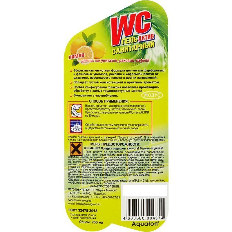 Средство для сантехники Санитарный Актив 750 мл (отдушки в ассортименте). НазначениеЧистящее средство для ухода за туалетом и ванной комнатой. Предназначено для санитарно-гигиенической обработки и отбеливания. Средство эффективно удаляет органические загрязнения, микробы, бактерии, грибки и плесень. Дезинфицирует, дезодорирует и отбеливает поверхность. Гелевая структура средства позволяет равномерно распределяться на обрабатываемую поверхность и дольше на ней удерживаться, что усиливает время контакта действующего вещества с очищаемой поверхностью.Не содержит абразива, не повреждает эмаль. Способ примененияДля туалета: нанести средство на загрязненную поверхность. Провести обработку щеткой, затем смыть водой. При сильных загрязнениях нанести гель на 20 минут.Для раковин: обработать средством загрязненную поверхность, выдержать несколько минут и смыть водой. Меры предосторожностиПродукт содержит щелочь и активный хлор! Беречь от детей! При работе со средством рекомендуется пользоваться резиновыми перчатками. При попадании в глаза промыть большим количеством воды. При случайном употреблении внутрь обратиться к врачу, показав флакон и этикетку. Не смешивать с другими чистящими средствами. Во избежание порчи изделий не допускать попадания средства на керамогранит и поверхности, неустойчивые к воздействию активного хлора. Состав: очищенная вода, сульфаминовая кислота, щавелевая кислота, нПАВ (<5%), загуститель, парфюмерная композиция, краситель. Условия храненияХранить при комнатной температуре. Избегать попадания прямых солнечных лучей. В случае замерзания, после размораживания сохраняет свои свойства. После размораживания встряхнуть. Срок годности: 1 год. ГОСТ/ТУГОСТ 32478-2013