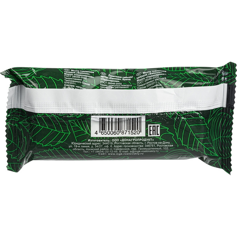 Мыло туалетное кусковое 'Банное' в обертке, вес 90 г.<br><b>Состав: </b><br>Натриевые соли жирных кислот пальмового, кокосовых масел и натуральных животных жиров, натр едкий, вода, двуокись титана, хлорид натрия, антиоксидант агидол, ароматическая композиция.<br><br>Относится к сегменту <b>Суперэконом</b> - это оптимальное соотношение цены и качества, для тех, кто хочет сэкономить. Товар отвечает основным характеристикам.<br><br>При транспортировке и хранении необходимо избегать механических воздействий и резких перепадов температуры и влажности, иначе возможно изменение плотности.