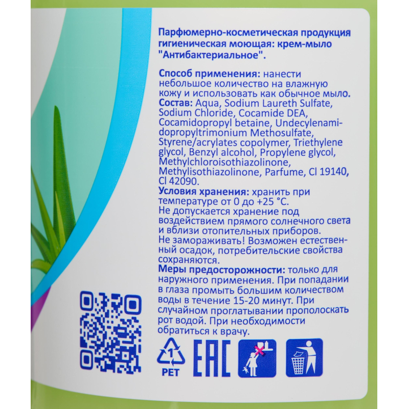 Крем-мыло Luscan Алоэ вера антибактериальное 500 мл. Назначение: крем-мыло алоэ вера антибактериальное убивает бактерии, микробы и активизирует защитные функции организма. Внешнее использование алоэ вера восстанавливает, регенерирует ткани, заживляет свежие раны. Благодаря мягкой моющей основе с активными веществами, мыло идеально подходит для ежедневного применения. Способ применения: нанести небольшое количество на влажную кожу и использовать как обычное мыло. Меры предосторожности: хранить в недоступном для детей месте! При попадании в глаза промыть большим количеством воды в течение 15-20 минут. При случайном проглатывании прополоскать рот водой. При необходимости обратиться к врачу. Состав: вода, содиум лаурет сульфат, содиум хлорид, кокамид дэа, ундециленамидопропилтримониум метосульфат, гликоль дистеарат, триэтиленгликоль, бензил алкоголь, пропиленгликоль, метилхлороизотиазолинон, метилизотиазолинон, ароматизирующий компонент, лимонная кислота. Условия хранения: хранить при температуре от 0 до 25 градусов Цельсия. Не допускается хранение под воздействием прямого солнечного света и вблизи отопительных приборов. Не замораживать! Срок годности 18 месяцев при соблюдении условий хранения и правил транспортировки. <!--noindex-->Внешний вид и/или характеристики товара могут быть изменены производителем в соответствии с производственным процессом.<!--/noindex-->