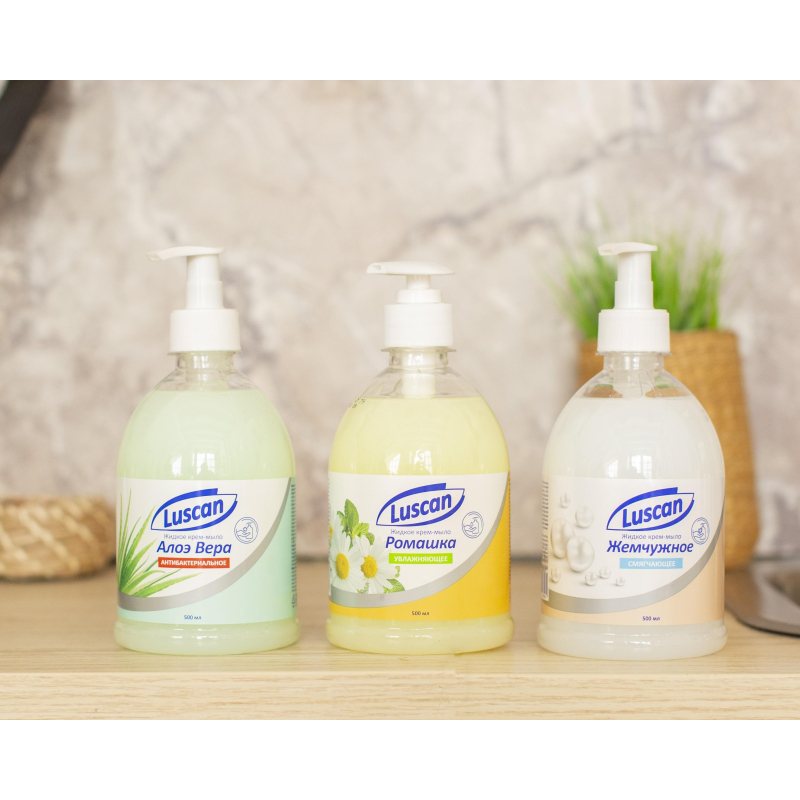Крем-мыло Luscan Жемчужное 500 мл. Назначение: крем-мыло жемчужное создано на основе только высококачественных компонентов и природных увлажнителей, что обеспечивает деликатный уход за кожей. Благодаря входящим в состав смягчающим компонентам сохраняет защитные функции кожи, не вызывая ее сухости и раздражения. Идеально подходит для ежедневного применения. Способ применения: нанести небольшое количество на влажную кожу и использовать как обычное мыло. Меры предосторожности: хранить в недоступном для детей месте! При попадании в глаза промыть большим количеством воды в течение 15-20 минут. При случайном проглатывании прополоскать рот водой. При необходимости обратиться к врачу. Состав: вода, содиум лаурет сульфат, содиум хлорид, кокамид дэа, кокамидопропил бетаин, стирен/акрилатный сополимер, триэтиленгликоль, бензиловый спирт, пропиленгликоль, метилхлороизотиазолинон, метилизотиазолинон,ароматизирующий компонент, лимонная кислота. Условия хранения: хранить при температуре от 0 до 25 градусов Цельсия. Не допускается хранение под воздействием прямого солнечного свет аи вблизи отопительных приборов. Не замораживать! Срок годности 18 месяцев при соблюдении условий хранения и правил транспортировки.<!--noindex-->Внешний вид и/или характеристики товара могут быть изменены производителем в соответствии с производственным процессом.<!--/noindex-->