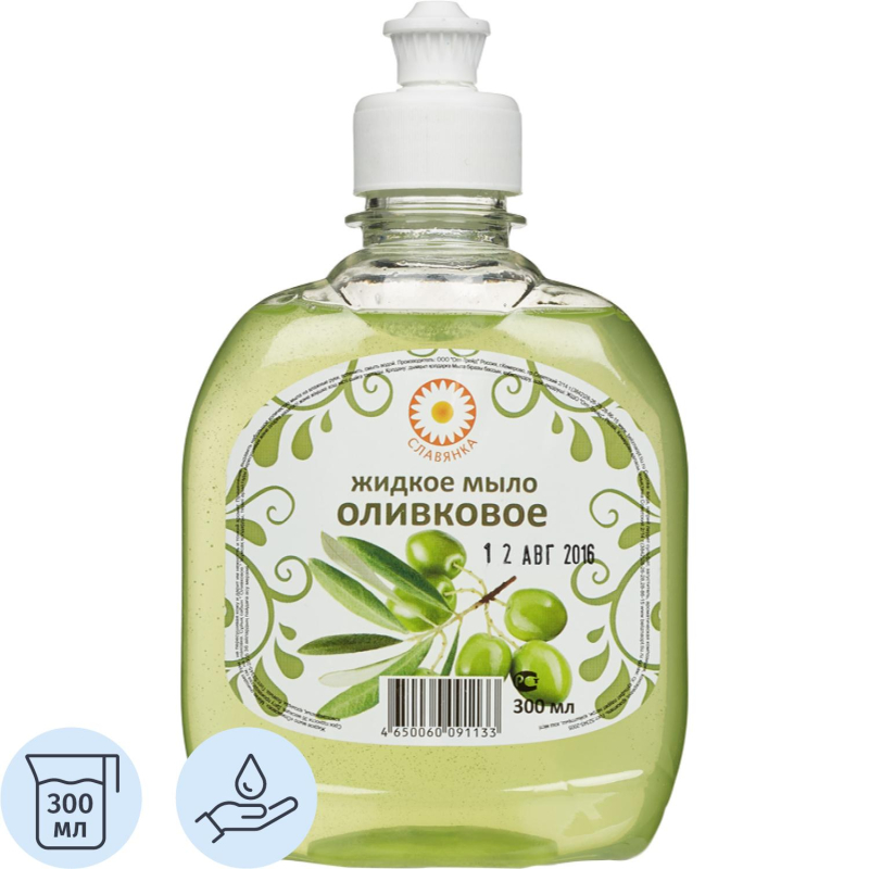 Жидкое мыло Славянка Оливковое 300 мл. Назначение: жидкое мыло. Оливковое мягко очищает руки, не пересушивая кожу, дарит им нежность и тонкий аромат. Способ применения: небольшое количество средства нанести на смоченную водой кожу, помассировать, смыть водой. Меры предосторожности: при попадании средства в глаза промыть большим количеством воды. Состав: вода, натрий лаурет сульфат, загуститель, ароматическая композиция, консервант, краситель. Условия хранения: хранить в недоступном для детей месте отдельно от пищевых продуктов. Срок годности: 3 года с даты изготовления.