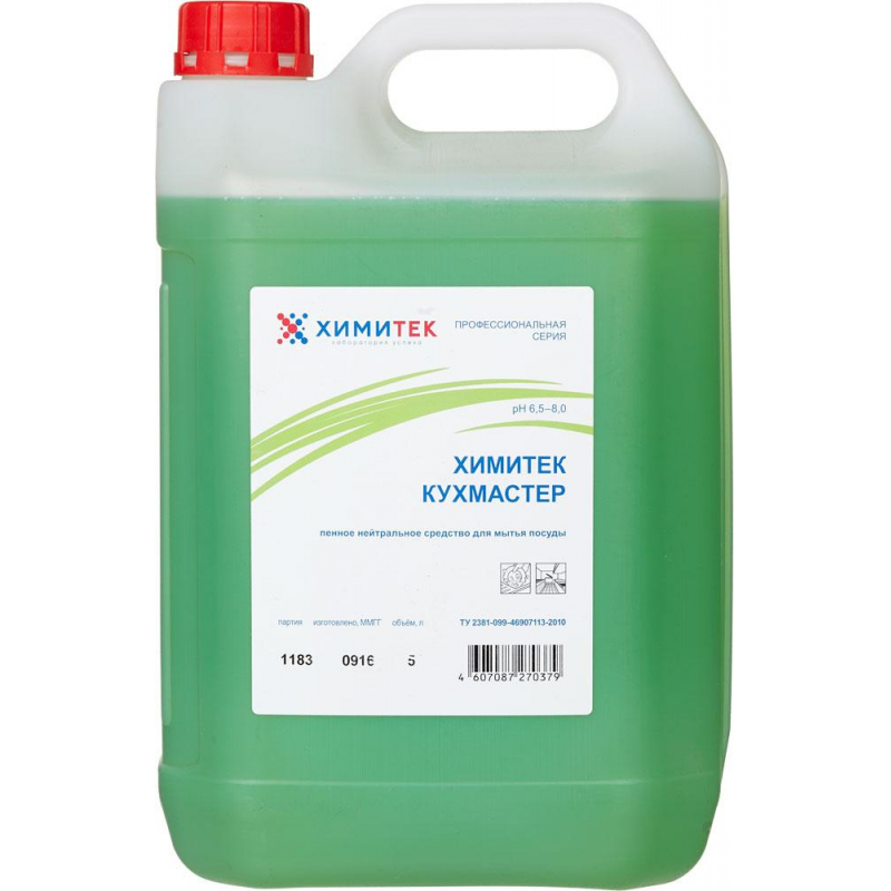 Концентрированное жидкое пенное нейтральное средство для мытья посуды Химитек КухмастерНазначение: Предназначено для ручной мойки посуды, кухонного оборудования, тары, рабочих поверхностей столов. Удаляет пищевые и бытовые загрязнения. Применяется для мытья любых твердых поверхностей в общественных помещениях различного назначения. Рекомендуется для применения на предприятиях общественного питания, пищевой промышленности, в ЛПУ для посуды, не требующей специальной санитарной обработки, в санаторно-курортных, детских, дошкольных, школьных и других аналогичных учреждениях, а также в быту.Способ применения: В зависимости от способа мойки, характера и степени загрязнений средство используется в виде концентрата или 0,5%-1% растворов, которые готовят в емкостях из любого материала добавлением концентрата в воду. Температурный режим применения - от 15°C до 50°C.Для мойки посуды нанести небольшое количество средства на влажную губку или приготовить в емкости 0,5% раствор из расчета 5 мл средства (1 чайная ложка) на 1 л воды. Вымыть посуду и тщательно ее ополоснуть. Для удаления присохших пищевых загрязнений погрузить посуду в 0,5% раствор средства на 10-20 минут.Для мойки различных твердых поверхностей средство используют в виде 0,5%-1% растворов, которые наносят способами орошения и/или протирания.Срок годности растворов - не менее 7 суток.Меры предосторожности: Избегать попадания средства в глаза. При работе со средством рекомендуется пользоваться резиновыми перчатками. Хранить в недоступном для детей месте.В случае попадания средства в глаза рекомендуется промывание проточной водой. Условия хранения: Хранить в закрытом виде при температуре от 0°C до +40°C.Состав: Вода 30%, анионные ПАВ 5%, но <15%, амфотерные ПАВ <5%, неионогенные ПАВ <5%, тетранатриевая соль ЭДТА <5%, хлористый натрий <5%, консервант <5%, отдушка <5%, краситель <5%.Срок годности: 2 года при соблюдении условий хранения в невскрытой упаковке производителя.