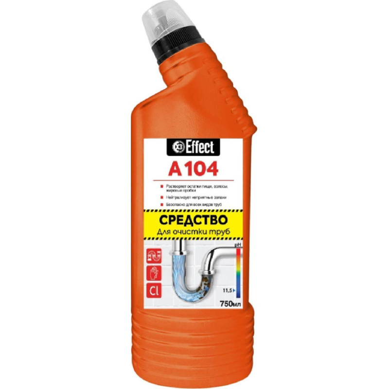 Средство для очистки канализационных труб Effect Alfa 104Назначение: Предназначено для очистки и профилактического ухода за канализационными трубами. Эффективно растворяет в стоках волосы, остатки пищи, жир и другие загрязнения. Нейтрализует неприятные запахи. Средство безопасно для всех видов труб, в том числе пластиковых.Можно использовать для гостиниц, ресторанов, офисов, на объектах пищевой промышленности, предприятиях общественного питания, в лечебно-профилактических, санаторно-курортных, детских, дошкольных и других аналогичных учреждениях.Способ применения: Аккуратно налить гель (250 мл) в сливное отверстие канализационной трубы. Не смывать в течение 5-15 мин. При сильных засорах оставить на большее время. Промыть сильной струей воды. При необходимости обработку повторить.Профилактика: обработку проводить 1 раз в месяц.Меры предосторожности: Осторожно! Содержит щелочь! При попадании в глаза и на кожу вызывает раздражение! При попадании на кожу - промыть большим количеством воды! При попадании в глаза - осторожно промыть водой в течение нескольких минут. При необходимости обратиться за медицинской помощью. При работе рекомендуется использовать резиновые перчатки. Хранить в плотно закрытой упаковке, отдельно от пищевых продуктов, в недоступных для детей местах. Не смешивать с другими веществами! Средство замерзает, после размораживания сохраняет свои свойства. По истечении срока годности средство и упаковку утилизируют как бытовой отход.Условия хранения: Хранить в сухом прохладном месте. Предохранять от попадания прямых солнечных лучей.Состав: 5%, но<15% гипохлорит натрия; <5%: АПАВ и НПАВ, гидроксид натрия, соль ЭДТА.Срок годности: 18 месяцев. Внешний вид продукта может отличаться от представленного на сайте в связи с переходом на другую упаковку