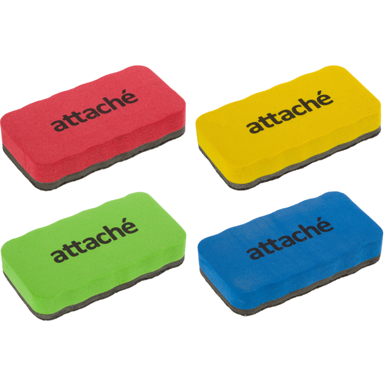 Губка Attache Economy предназначена для стирания маркеров с белых досок сухим способом. Компактный размер губки позволяет аккуратно вносить исправления. Оснащена магнитной пластиной для крепления к доске. Размер - 105x55 мм. Стирающая поверхность губки выполнена из войлока. Губка используется без сменных салфеток. 4 цвета в упаковке. Обращаем внимание, что для эффективного удаления с магнитно-маркерной доски засохших записей рекомендуем использовать губку в сочетании со спреем для магнитно-маркерных досок (например: арт. 134430, 934504, 176550). Спрей необходимо распылить на доску, а затем стереть остатки надписи губкой.