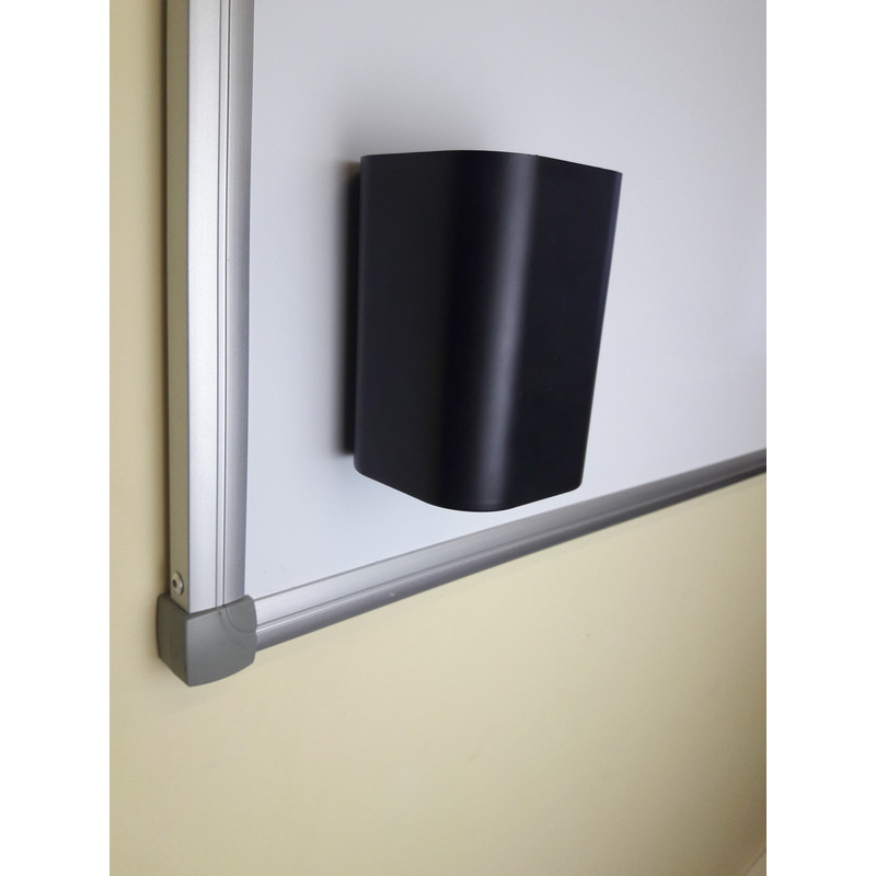 Держатель для маркеров Attache Loft магнитный, в форме стакана, изготовлен из полистирола черного цвета и служит для хранения в нем маркеров для белых досок и других мелких предметов и письменных пренадлежностей. Одна из сторон держателя имеет магнитную полосу, позволяющую крепить его к любым металлическим поверхностям, в том числе и к магнитно-маркерной поверхности досок.