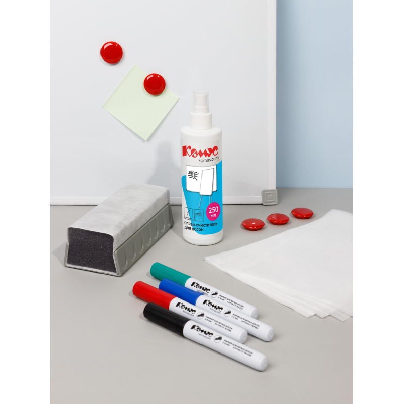 Спрей помпового типа, очиститель маркерных досок. Предназначен для очистки поверхности маркерной доски от маркеров и фломастеров. Флакон - 125 мл. В упаковке - 12 штук. Материал упаковки: пластик. Страна происхождения: Россия.