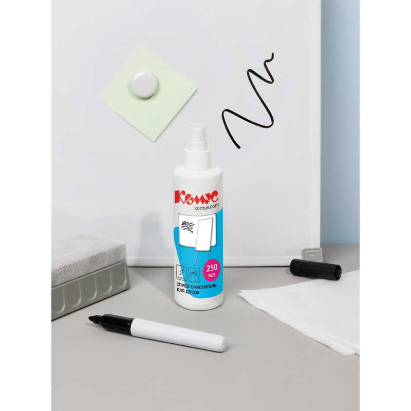 Спрей-очиститель для маркерных досок Используется для ухода за белыми досками. Убирает следы от маркера, грязи и пыли. Устраняет электростатические заряды. Аэрозольная упаковка. Подходит для ежедневного применения. Объем 250 мл. Материал упаковки: пластик. Страна происхождения: Россия.