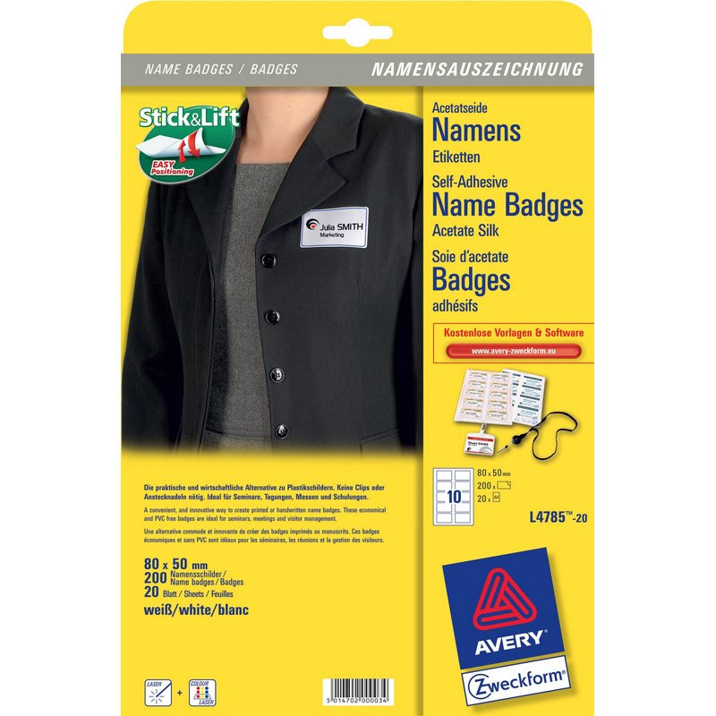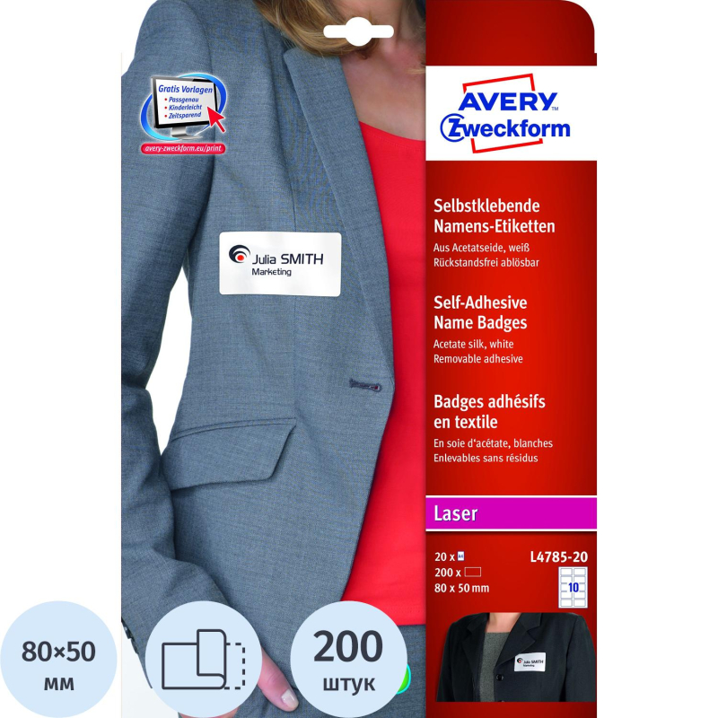 Бейдж Avery Zweckform изготовлен из искуственного шелка. Приклеивается на любую гладкую поверхность и удаляется без следов клея, можно переклеивать неоднократно. Размер бейджика - 80x50 мм. В картонной упаковке 20 листов, на листе 10 бейджей. Область применения:для презентаций. Страна производитель: Германия. Для оформления и печати этикеток удобно использовать шаблон в формате Word. Для удобства работы с рисунками необходимо выделить вставленный в шаблон рисунок левой кнопкой мыши, открыть вкладку 'Формат' и выбрать режим 'Обтекание текстом - По контуру'. Также рекомендуем использовать фирменное программное обеспечение от Avery Zweckform. С его помощью возможно как простое редактирование текста на этикетке, так и создание креативных проектов и сложных дизайнов. Возможности программы: вставка картинок и объектов, импорт баз данных из файлов Excel, создание штрихкодов и матричных кодов, слияние данных для почтовой рассылки, создание серийных номеров. Вы найдете более 500 готовых дизайнов, графики, рисунков на любую тему. Для того чтобы программа работала корректно, убедитесь, что у вас: - установлена требуемая версия Adobe Flash Player (необходимо установить или обновить имеющуюся); - удалены/почищены cookies в браузере, которым вы пользуетесь; - либо попробуйте зайти с помощью другого браузера (Google Chrome или Mozilla Firefox). Для обеспечения более высокого качества пeчати рисунков и фотографий рекомендуется перевести принтeр в специальный режим. Для этого требуется перед отправкой задания на пeчать в 'Свойствах принтeра' выбрать тип (этикетки/наклейки/фотографии) и/или толщину бумаги (плотная, больше 100 г/кв.м и т.п.) - в зависимости от драйвера принтeра настройки могут отличаться.