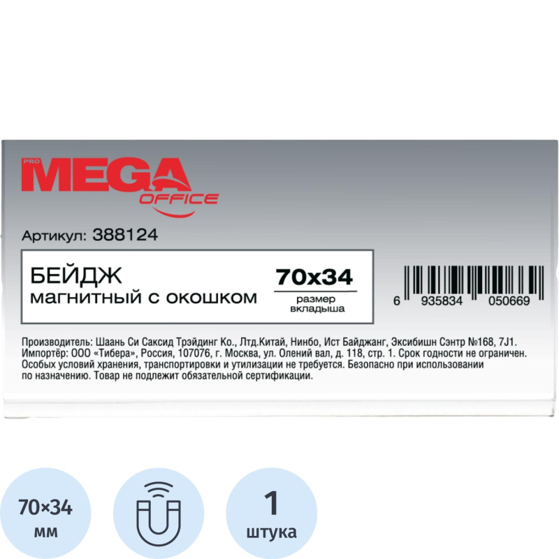 Бейдж ProMega office горизонтальный прозрачный, изготовлен из прочного пластика. Размер бейджа - 70x34 мм. Поставляется с вкладышем для записей. В изделии в качестве крепежного элемента используется магнит.