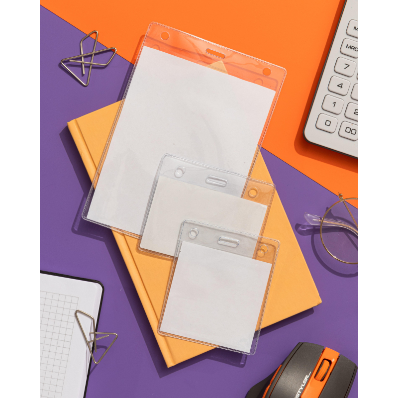 Бейдж вертикальный Комус изготовлен из прозрачного гладкого пластика, плотность 250 мкм. Размер бейджика - 163x114 мм. Размер вкладыша - 142х110 мм. Карман для бейджа под ретрактор, ленту с клипсой, клипсу с булавкой, шнур, карабин. Подходят для ношения именных карточек и пропусков. Поставляется без тесьмы. Поставляется в упаковке в количестве 50 штук.