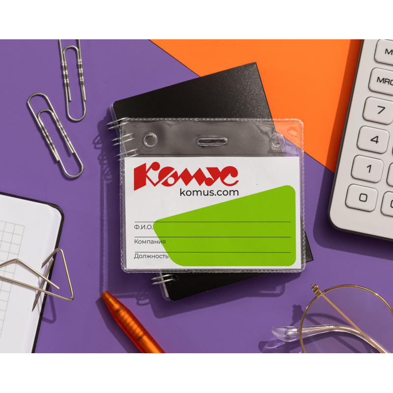 Горизонтальный бейдж размером 93x78 мм подходит для закрепления на держателе с рулеткой. Предназначен для ношения именных карточек, пропусков, размером 86x58 мм. Изготовлен из плотной прозрачной ПВХ- пленки. В упаковке 10 бейджей. Страна производитель: Россия.