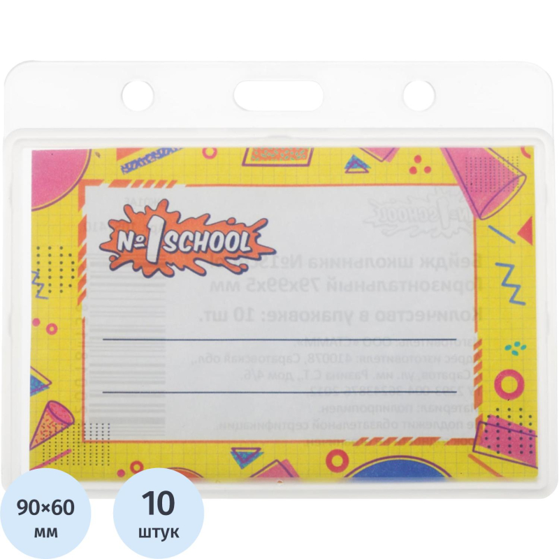 Бейдж горизонтальный №1 School предназначен для детей младшего школьного возраста. Имеет яркий дизайн, прочный корпус и надежно закрывается при помощи микро-защелок. Идеально подойдет для школьников младших и средних классов, где может применяться для идентификации учащегося в образовательных учреждениях. Изготовлен из сертифицированного полипропилена. Продается без держателя. Размер: 79x99 мм.
