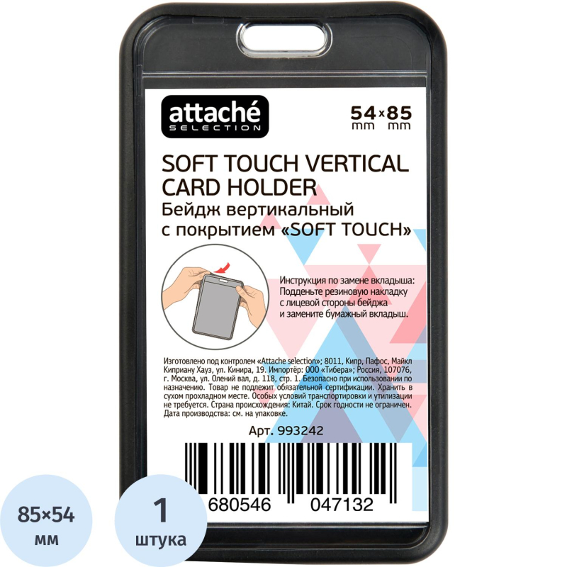 Вертикальный бейдж Attache Selection выполнен из пластика черного цвета с мягким покрытием Soft Touch. Размер вкладыша - 85х54 мм. Размер бейджа - 64х109 мм. Подходит для использования на держателе с рулеткой или тесьмой. Предназначен для использования на семинарах, конференциях, выставках и прочих мероприятиях.