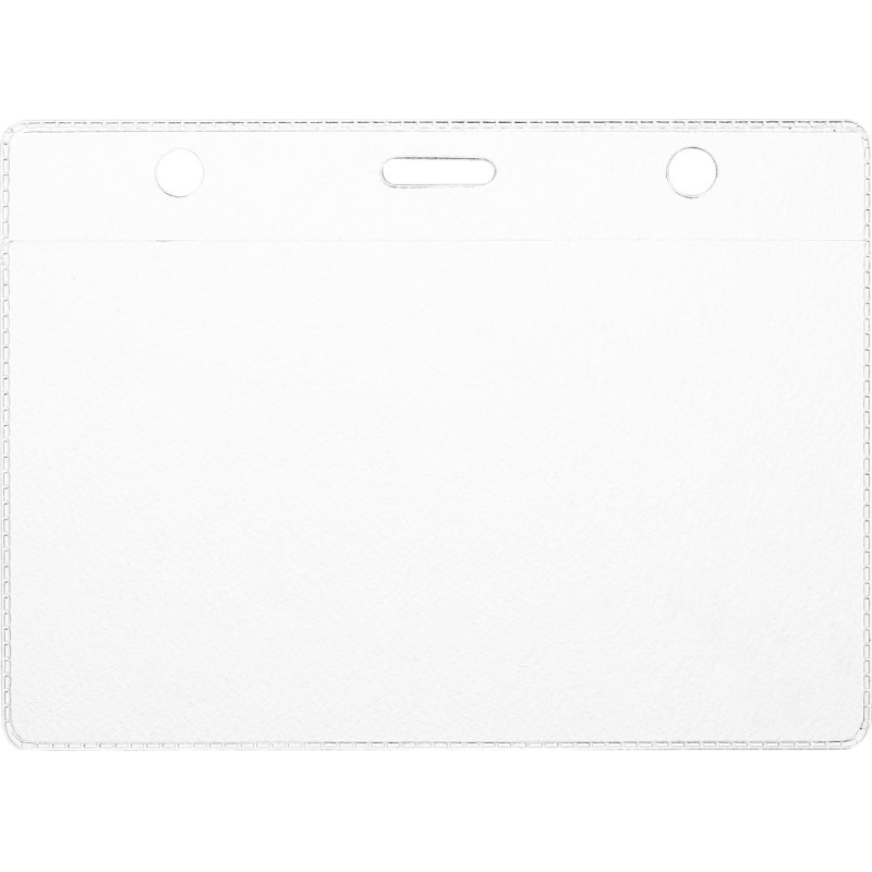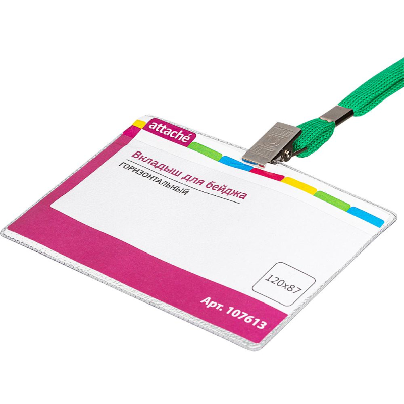 Бейдж горизонтальный изготовлен из высококачественной импортной пленки ПВХ с прозрачной фактурной антибликовой поверхностью плотностью 180 мкм. Имеет одно овальное и два круглых отвеверствия. Размер бейджа по наружному шву 120х87 мм, размер вставки 113х70 мм. Для крепления используется клипса с лентой зеленого цвета. Ширина ленты 10 мм, длина 800 мм. Упаковка 10 штук. Страна производитель: Россия.