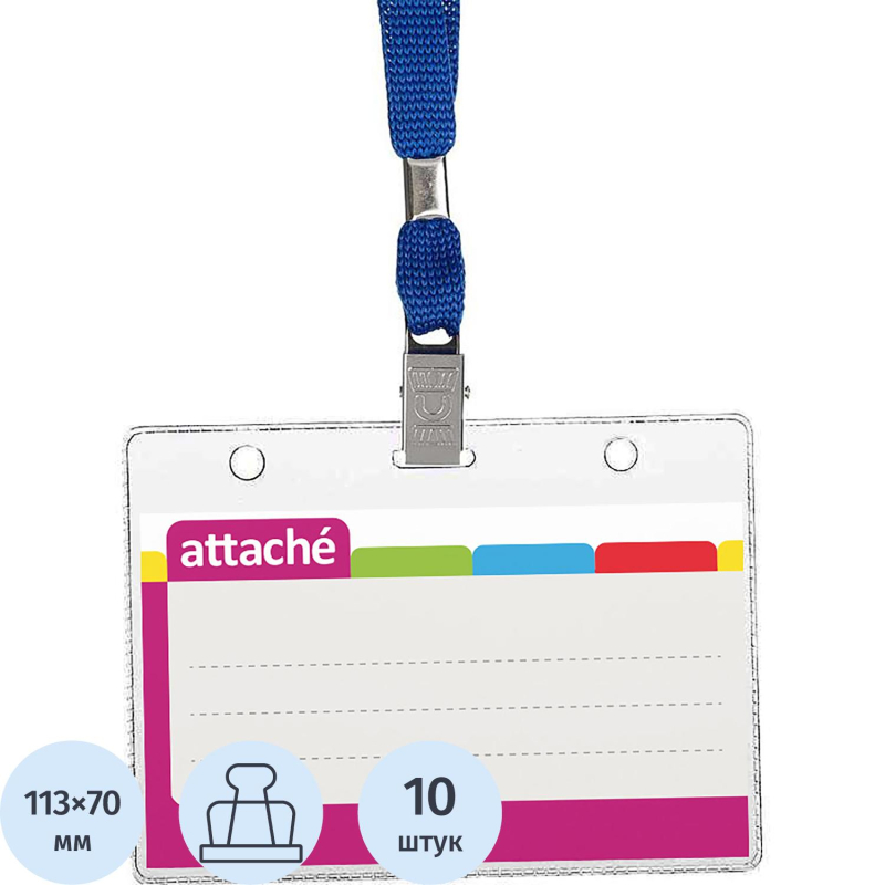 Бейдж Attache горизонтальный, изготовлен из прозрачного фактурного пластика, плотность 180 мкм. Размер бейджика - 120x87 мм, предназначен для именной карточки размером 113х70 мм. Крепление изделия осуществляется при помощи металлического зажима на тесьме. Цвет тесьмы - синий. Ширина ленты 10 мм, длина 80 см. Подходит для именных карточек и пропусков. Поставляется в упаковке в количестве 10 штук.