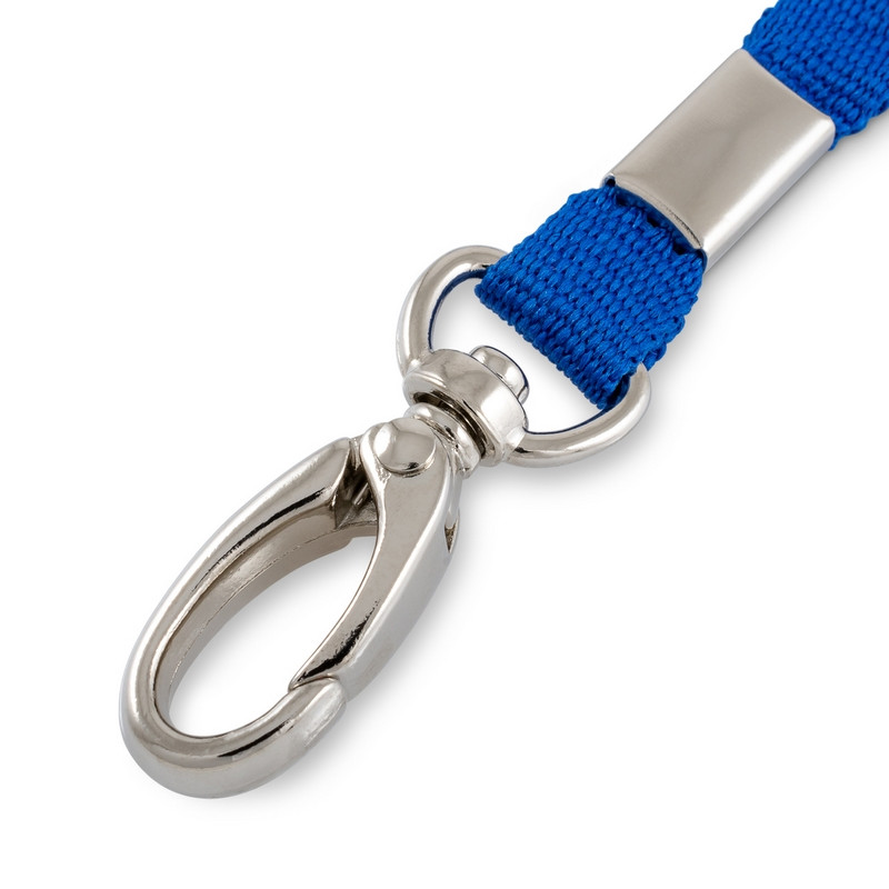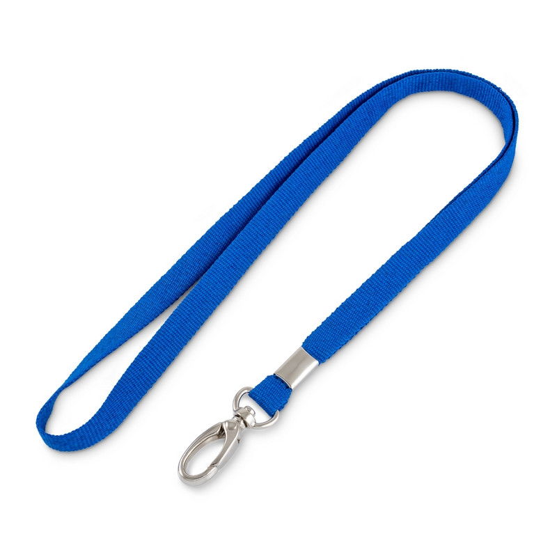 Лента для бейджа синего цвета с карабином-клешня. Лента изготовлена из репсового материала. Длина - 90 см, ширина - 10 мм. Используется для фиксации бейджа или пропуска.