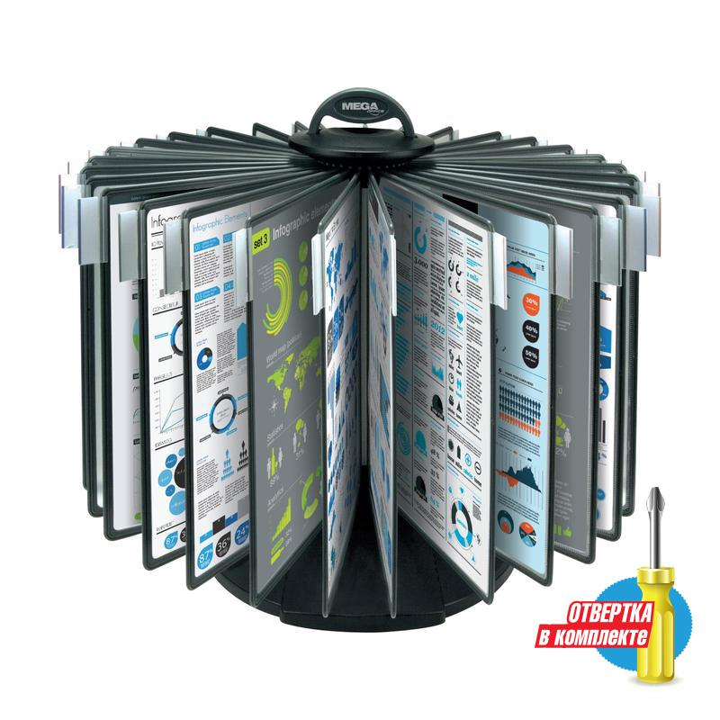 Демонстрационная система Promega office позволяет разместить одновременно до 60 документов формата А4. Демонстрационная система имеет устойчивое основание для длительного использования без риска опрокидывания. Демопанели изготовлены из полипропилена, пригодного для повторной переработки и дальнейшего использования. Демопанели оснащены цветными закладками-табуляторами для маркировки и удобного поиска нужной информации. Карман демопанели из прочного прозрачного материала с антибликовым покрытием надежно защищает документы от внешних воздействий и обеспечит их качественную презентацию. В комплектацию с демосистемой входит отвертка. Благодаря этому можно быстро и легко собрать демонстрационную систему на месте без поиска дополнительных инструментов. Круговой держатель демопанелей, вращающийся на 360 градусов, позволяют использовать демонстрационную систему нескольким людям одновременно.