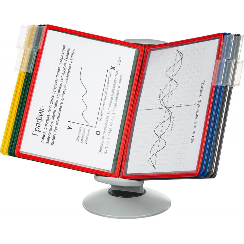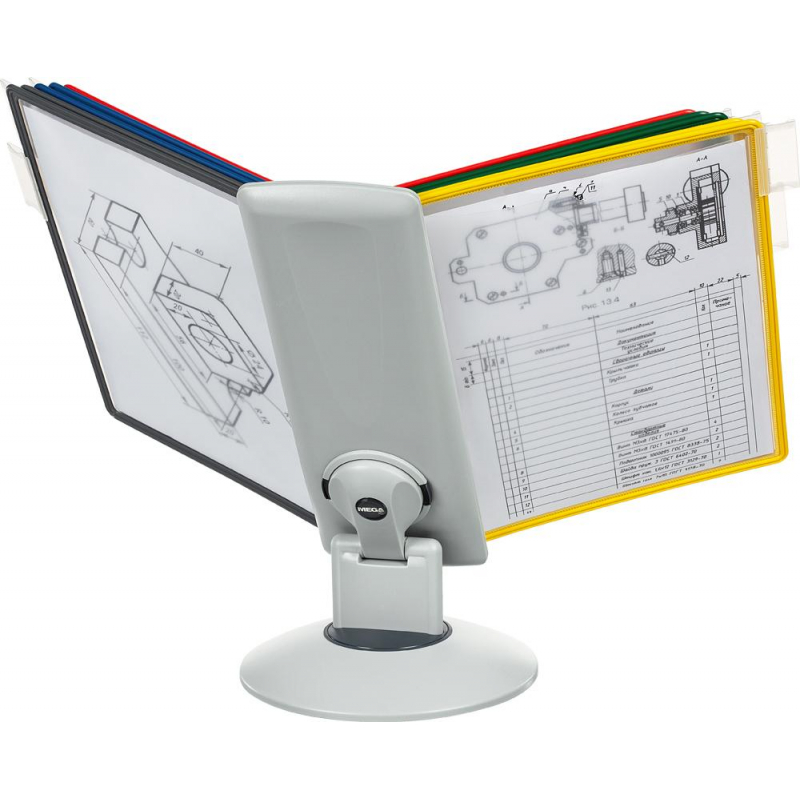 Демонстрационная система Promega office позволяет разместить одновременно до 20 документов формата А4. Демонстрационная система имеет устойчивое основание для длительного использования без риска опрокидывания. Демопанели изготовлены из полипропилена, пригодного для повторной переработки и дальнейшего использования. Демопанели оснащены цветными закладками-табуляторами для маркировки и удобного поиска нужной информации. Карман демопанели из прочного прозрачного материала с антибликовым покрытием надежно защищает документы от внешних воздействий и обеспечит их качественную презентацию. Уникальная конструкция демонстрационной системы позволяет просматривать документы как в книжкой, так и в альбомной ориентации. Яркие цветные демопанели с легкостью привлекут внимание клиентов. В комплектацию с демосистемой входит отвертка. Диаметр основания настольной демосистемы 40 см, высота 20 см. Демосистема имеет 3 угла наклона до 90 градусов.