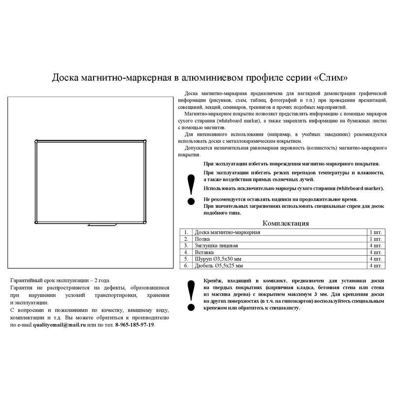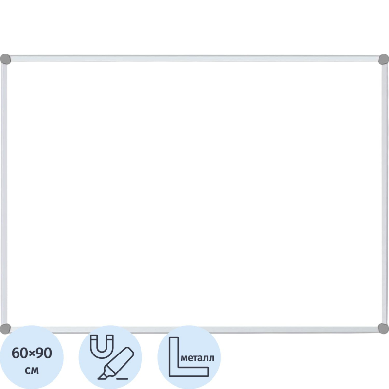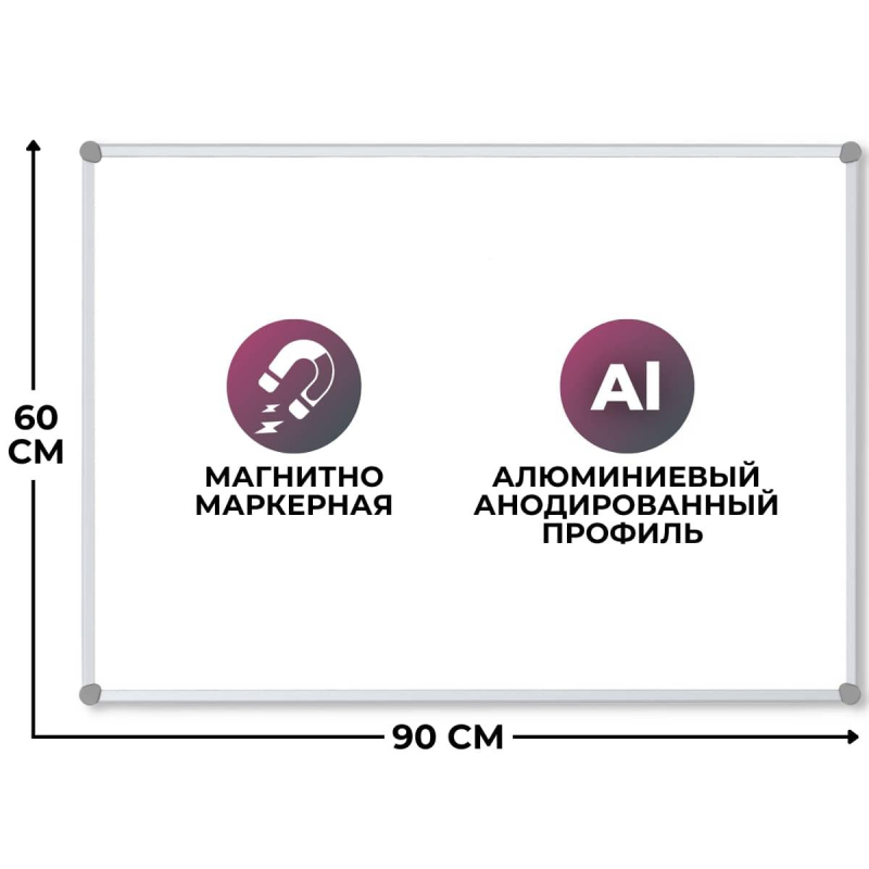 Доска магнитно-маркерная Attache Economy 60х90 см, настенная, с лаковым покрытием, в алюминиевом профиле. Комплектуется полочкой для маркеров. Для письма использовать специальные маркеры для магнитно-маркерных досок. Покрытие доски имеет возможность крепления информации при помощи магнитов, при удалении записей используются только специальные губки-стиратели , в комбинации со специализированным спреем, для более тщательной очистки полотна. Соблюдение правил ухода и эксплуатации способно обеспечить срок службы рабочей поверхности магнитно-маркерной доски более 10 лет. Надежное крепление доски в 4-х точках. Возможность горизонтального и вертикального крепления. В набор каждой доски входит комплект креплений для самостоятельного монтажа. Ультратонкая конструкция: толщина центральной части - 3.5 мм, толщина доски по рамке - 6 мм, габаритная толщина по уголку - 11.5 мм. Глубина доски с рамой - 17 мм, без - 12-14 мм. Размер рабочей поверхности: 55x86 см. Товар относится к ценовому сегменту "суперэконом". Имеет упрощенные характеристики и более простую упаковку. Отвечает основным требованиям потребления. Для удаления пленки потяните за верхний свободный угол, пленка легко отойдет от рабочей поверхности. При необходимости проведите вдоль рамы канцелярским ножом.
