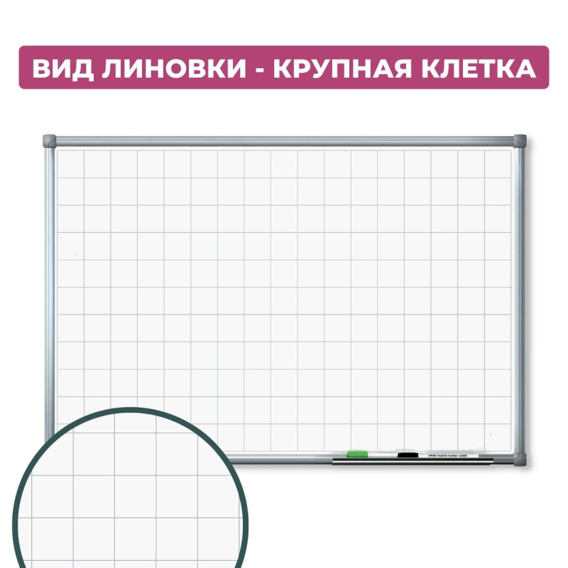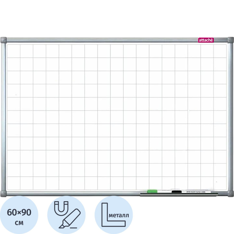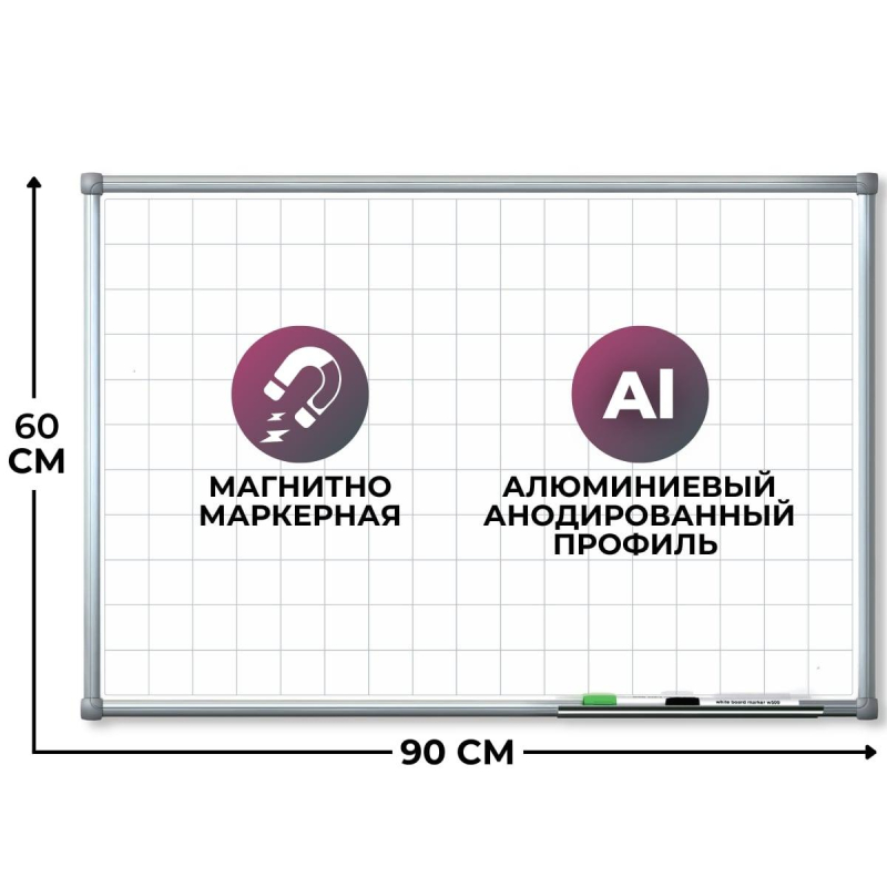 Доска магнитно-маркерная 60x90, настенная, с лаковым покрытием, в алюминиевом профиле. Размер клетки - 5 см. Комплектуется полочкой для маркеров. Для письма использовать специальные маркеры для магнитно-маркерных досок. Покрытие доски имеет возможность крепления информации при помощи магнитов, при удалении записей используются только специальные губки-стиратели, в комбинации со специализированным спреем, для более тщательной очистки полотна. В комплект входит крепления, для размещения доски к стене. Гарантия 1 год. Страна производитель Россия. За счет использования премиум профиля овального сечения шириной 21 мм конструкция доски имеет увеличенную прочность и надежность. Размер рабочей поверхности: 56x87 см. Для удаления пленки потяните за верхний свободный угол, пленка легко отойдет от рабочей поверхности. При необходимости проведите вдоль рамы канцелярским ножом.