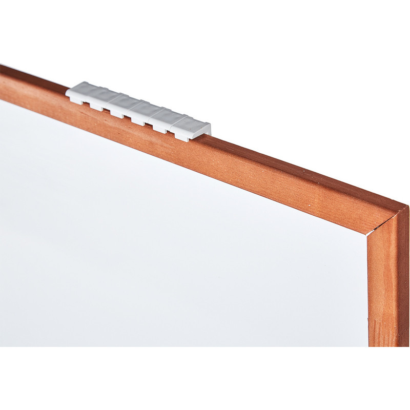 Доска магнитно-маркерная 100х150 см. в деревянном окрашенном профиле. Рабочее поле доски - магнитно-маркерное, для письма маркерами для белых досок и крепления информации при помощи магнитов. Рама из деревянного профиля 25 мм, окрашенного в темное дерево (морилка). Качественная обработка дерева, без сколов и сучков. Рама создается путем сращивания деревянных элементов, на изделии видны зигзагообразные швы. Доска крепится к стене при помощи шести пластиковых кронштейнов, возможно горизонтальное и вертикальное размещение доски на стене. Набор крепежа к стене входит в комплект. Упакована в картонную коробку. Размер рабочей поверхности: 96.7x148 см. Для удаления пленки потяните за верхний свободный угол, пленка легко отойдет от рабочей поверхности. При необходимости проведите вдоль рамы канцелярским ножом.