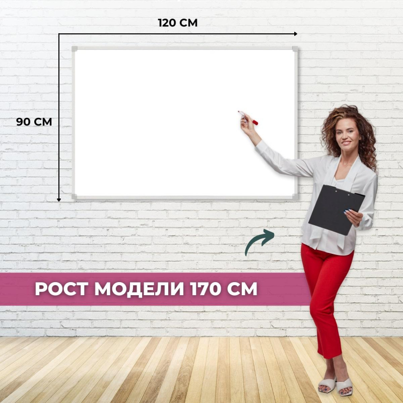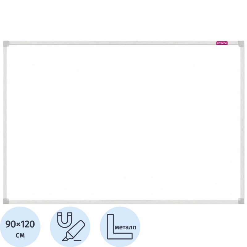 Доска магнитно-маркерная 90х120 см, настенная, с лаковым покрытием, в алюминиевом профиле. Комплектуется полочкой для маркеров. Для письма использовать специальные маркеры для магнитно-маркерных досок. Покрытие доски имеет возможность крепления информации при помощи магнитов, при удалении записей используются только специальные губки-стиратели, в комбинации со специализированным спреем, для более тщательной очистки полотна. В комплект входит крепления, для размещения доски к стене. Скрытое крепление к стене в четырех точках. Возможность горизонтального и вертикального крепления. Комплектация: дюбель 6х30 -4 ; шуруп универсал 3,5х30-4; кронштейн пластиковый-4; полочка; инструкция. Гарантия 1 год. Страна производитель Россия. Соблюдение правил ухода и эксплуатации способно обеспечить срок службы рабочей поверхности магнитно-маркерной доски более 10 лет. Увеличенное рабочее пространство за счет использования утонченной алюминиевой рамы шириной 11 мм. Размер рабочей поверхности: 86.8x116.8 см. Для удаления пленки потяните за верхний свободный угол, пленка легко отойдет от рабочей поверхности. При необходимости проведите вдоль рамы канцелярским ножом.