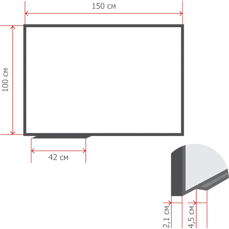 Доска магнитно-маркерная 100х150 см, настенная, с лаковым покрытием, в алюминиевом профиле. Комплектуется полочкой для маркеров. Для письма использовать специальные маркеры для магнитно-маркерных досок. Покрытие доски имеет возможность крепления информации при помощи магнитов, при удалении записей используются только специальные губки-стиратели, в комбинации со специализированным спреем, для более тщательной очистки полотна. В комплект входит крепления, для размещения доски к стене. Может крепиться к стене как горизонтально, так и вертикально. Комплектация: дюбель 6х30-4; шуруп универс 3,5х40-4; полочка; инстукция. Гарантия 1 год. Страна производитель Россия. Соблюдение правил ухода и эксплуатации способно обеспечить срок службы рабочей поверхности магнитно-маркерной доски более 10 лет. За счет использования премиум профиля овального сечения шириной 21 мм конструкция доски имеет увеличенную прочность и надежность. Размер рабочей поверхности: 96.7x148 см. Для удаления пленки потяните за верхний свободный угол, пленка легко отойдет от рабочей поверхности. При необходимости проведите вдоль рамы канцелярским ножом.