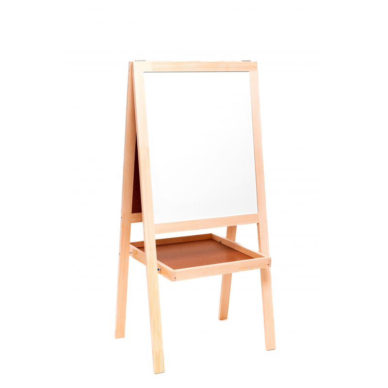 Доска двусторонняя магнитно-меловая/маркерная (мольберт), лаковое покрытие. Размер рабочей поверхности полотна - 56x67 см. Высота - 117 см. Материал рамы - натуральное дерево хвойных пород. Предназначена для нанесения информации мелом. Поверхность доски также позволяет прикреплять листы бумаги, карты и т.п. с помощью магнитов. При удалении записей используются только специальные губки-стиратели в комбинации со специализированным спреем. Для письма по белой магнитно-маркерной поверхности использовать маркеры для белых досок, для письма по зеленой магнитной меловой поверхности использовать мел или меловые маркеры. Комплектация: полочка для мела, инструкция. Страна-производитель - Россия.