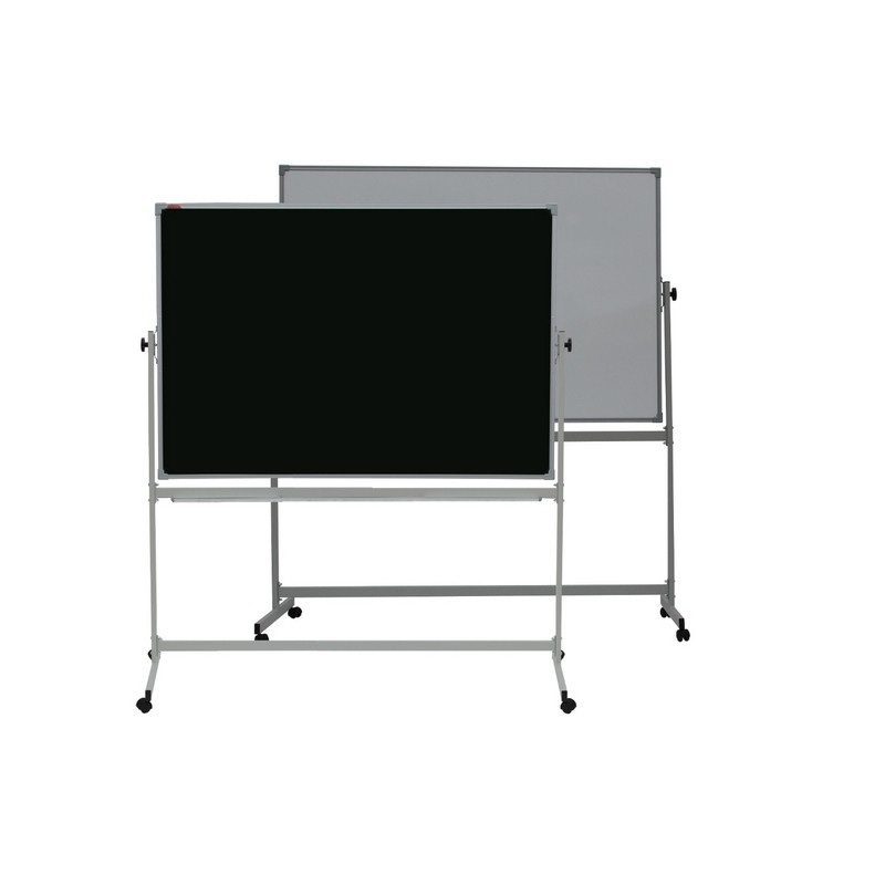 Доска магнитно-комбинированная меловая Attache для написания мелом, одна рабочая поверхность доски имеет покрытие черного цвета и для написания маркерами белую поверхность. Доска обрамлена в металлический профиль, окрашенный в серебристый цвет, и скреплена пластиковыми уголками. Доска вращающаяся на 360 градусов, на роликах, с лаковым покрытием. Простой и удобный узел фиксации позволяет установить полотно доски под произвольным углом. Стойки имеют поворотные колесные опоры, что позволяет легко перекатить доску. В комплекте крепление и полочка для принадлежностей (ВНИМАНИЕ: в настоящее время в конструкцию полочки для принадлежностей внесено временное изменение - полочка не крепится на горизонтальную часть рамы, как представлено на фото, роль полочки выполняет сама горизонтальная перекладина рамы. Данное изменение не влияет на потребительские свойства товара и не ухудшает его характеристики).