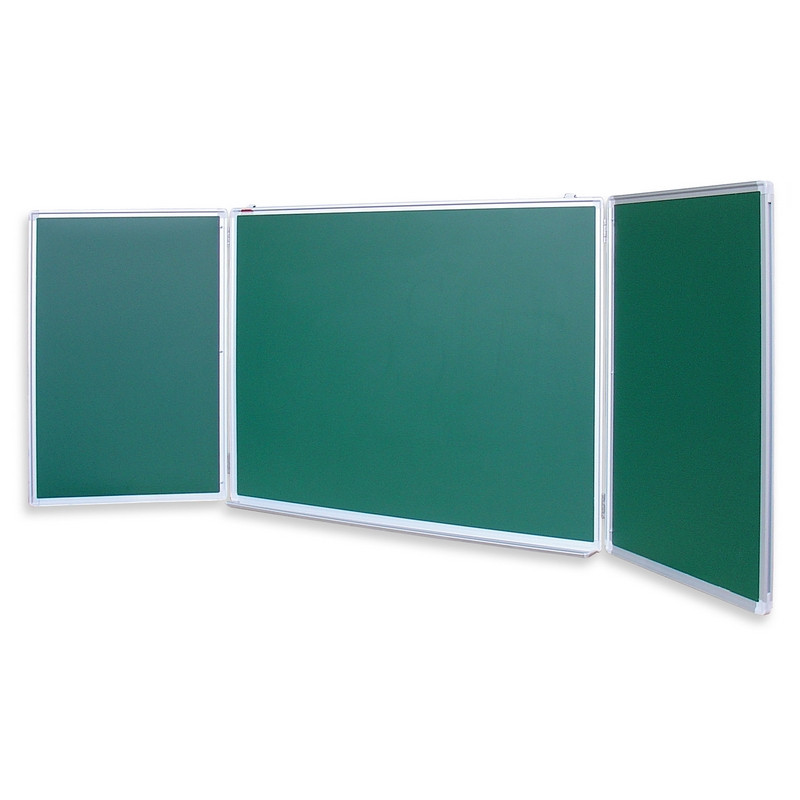 Доска трехсекционная магнитно-меловая Attache, лаковое покрытие. Доска имеет 2 створки - 5 рабочих поверхностей. Обратная сторона створок доски - зеленая. Размер доски в закрытом состоянии 150x100 см, размер боковых секций 100x75 см, размер доски в открытом состоянии - 300x100 см. Рама из алюминиевого анодированного профиля, скрепленного пластиковыми уголками. Предназначена для нанесения информации цветным мелом. Поверхность доски также позволяет прикреплять листы бумаги, картыи т. п. с помощью магнитов. При удалении записей используются только специальныегубки-стиратели, в комбинации со специализированным спреем. В комплекте широкая полочка для мела. Скрытое крепление к стене в четырех точках (центральная секция). Комплектация: доска магнитно-меловая со створками - 1 штука; заглушка лицевая - 12 штук; заглушка тыльная - 12 штук; шуруп универсальный 5x100 - 4 штуки; дюбель распорный 8x80 - 4 штуки; шуруп 4x13 - 2 штуки; полочка - 1 штука; инструкция. Толщина рабочей поверхности 18 мм, с рамкой 24 мм. Страна-производитель: Россия.