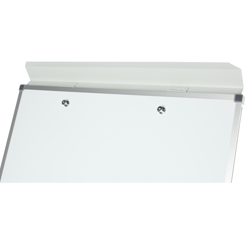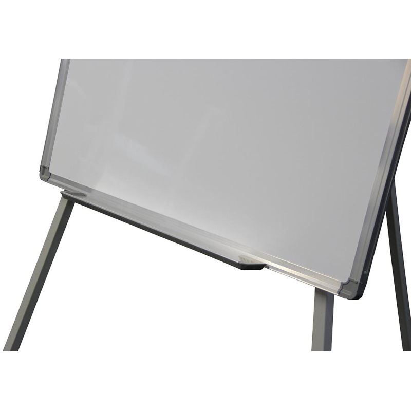 Мобильный флипчарт на треноге с маркерным покрытием. Высота регулируется, треноги имеют специальные винты, которые закручиваются на креплениях у ножек и можно регулировать высоту, до 180 см высота флипчарта (в полностью разложенном виде - чуть ниже, так как ноги будут под наклоном (около 170-175), минимальная высота не указывается так как ноги можно убрать заподлицо флипчарта. Предназначен для работ маркерами сухого стирания. Оснащен держателем для бумажного блокнота. Флипчарт, на который монтируется доска, выполнены из профиля прямоугольного сечения. Алюминиевая рама. На стойку нанесена порошковая покраска серого цвета. В комплект входит полочка для маркеров. Расширение треноги - 64 см. Для удаления пленки потяните за верхний свободный угол, пленка легко отойдет от рабочей поверхности. При необходимости проведите вдоль рамы канцелярским ножом.