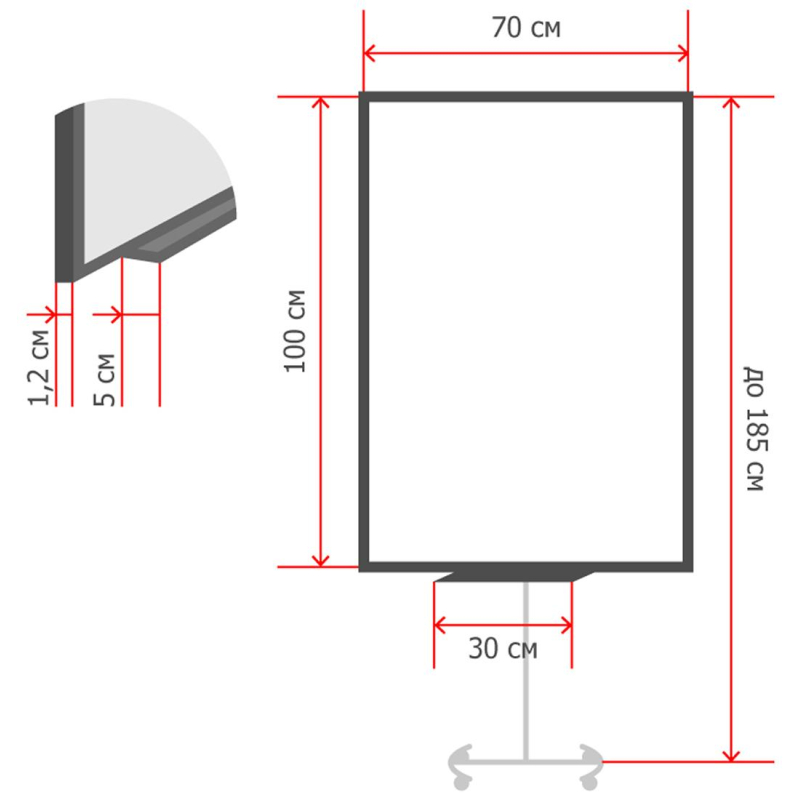 Доска-флипчарт Attache магнитно-меловая, 70x100 см, передвижная. Мобильная доска-флипчарт незаменима для проведения презентаций, совещаний. Алюминиевая рама. Черная металлическая поверхность предназначена для письма специальными меловыми маркерами и размещения информации с помощью магнитов. - Размер - 100x70 см. - Оснащена 4 вращающимися колесиками для удобства перемещения. - Держатель для бумажного блока. - Лоток для принадлежностей - Высота в сборе - 182 см. Для удаления пленки потяните за верхний свободный угол, пленка легко отойдет от рабочей поверхности. При необходимости проведите вдоль рамы канцелярским ножом.