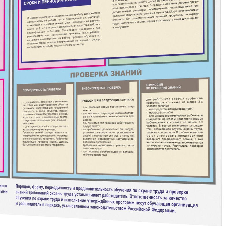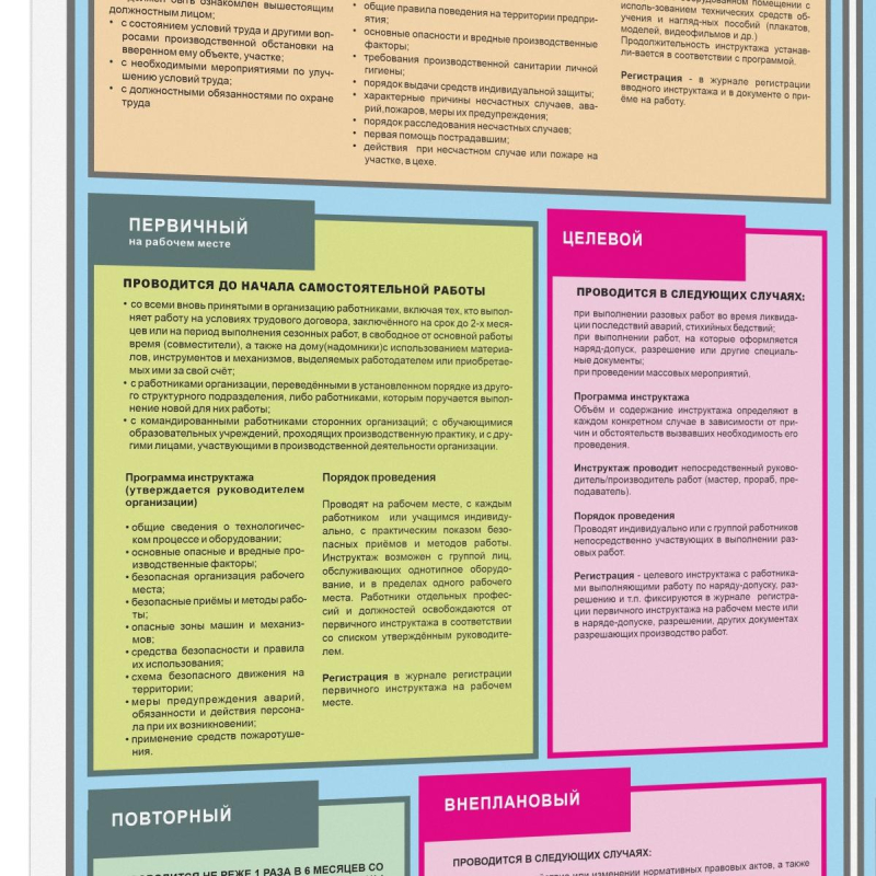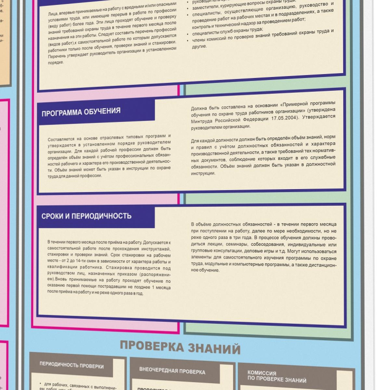 Информационный настенный стенд "Организация обучения охране труда" имеет основу из пластика. Размеры стенда - 470x430 мм. Является настенным.