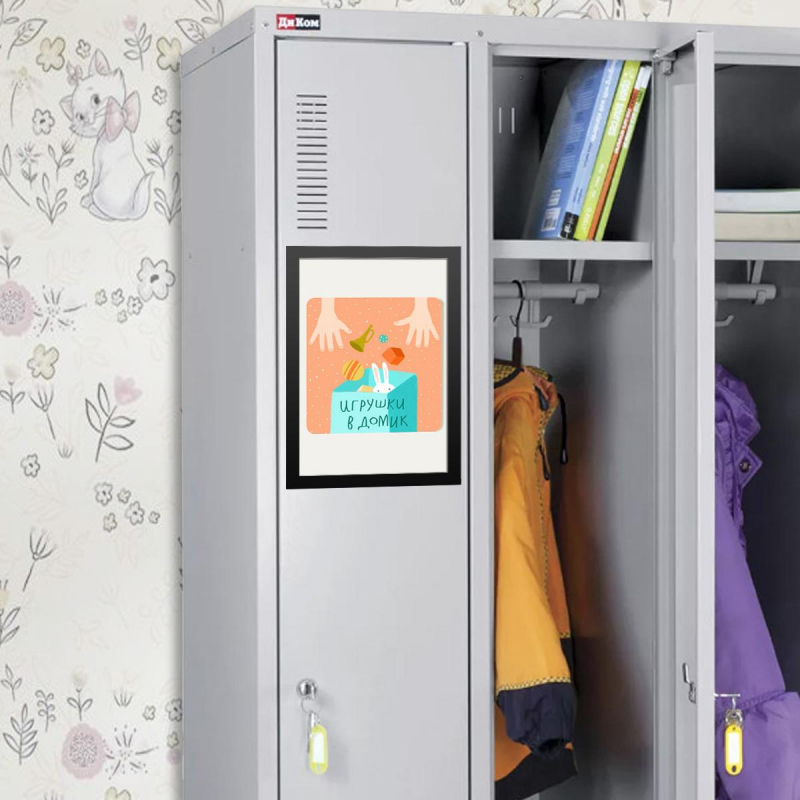 Информационная магнитная рамка настенная для формата А4 черная. Магнитная информационная рамка - идеальное решение для профессиональной презентации информации на металлических поверхностях - магнитно-маркерные доски, шкафчики, станки на производстве, двери, а также любые металлические стойки для печатной продукции. Горизонтальное и вертикальное использование. Области применения: данные по оборудованию, изделию, информация для сотрудников, схемы и т.д.